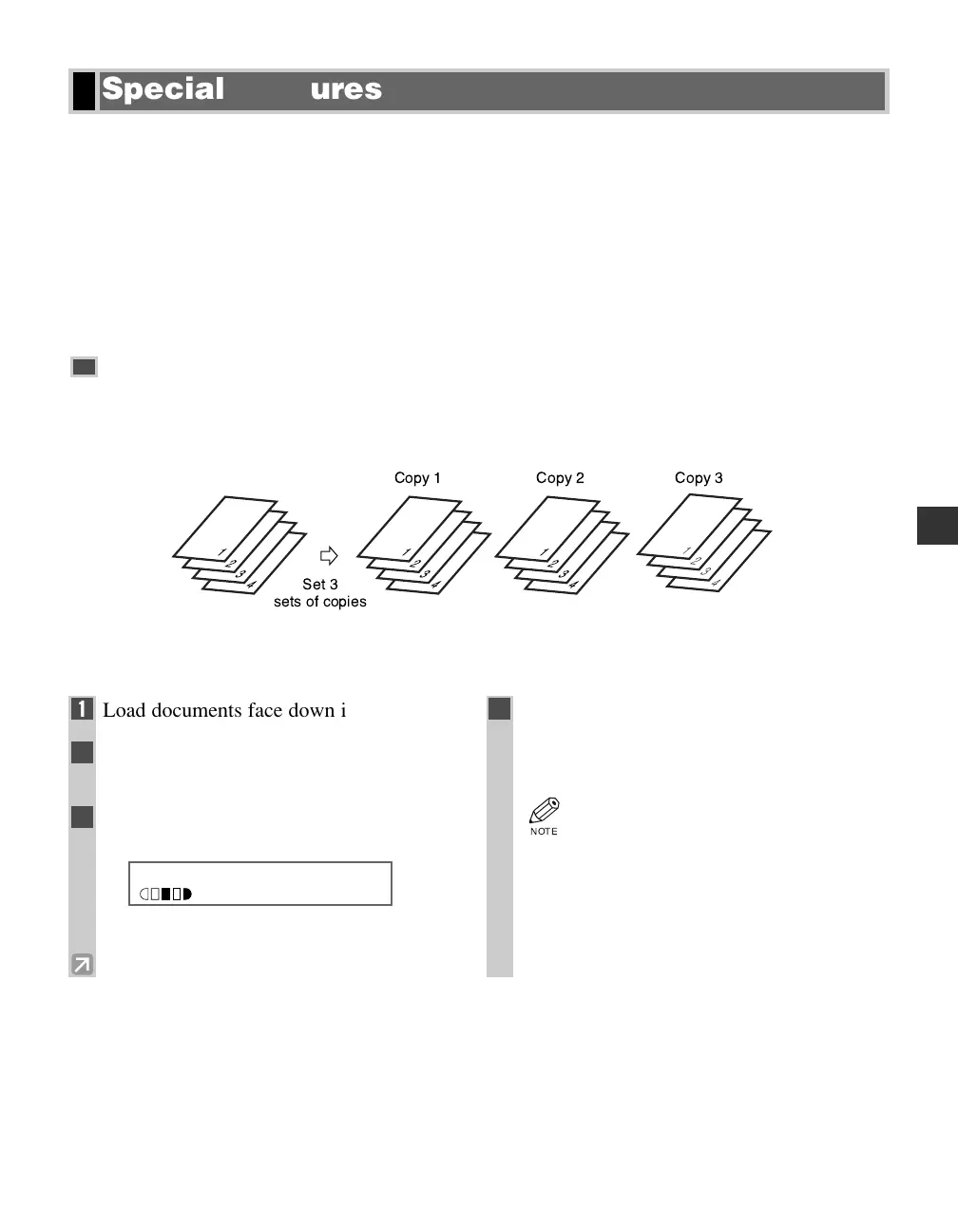 The machine has the following SPECIAL COPY features. These features allow you to sort copies in order of