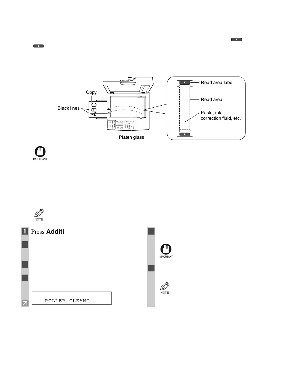 ) of the platen glass. Use a clean soft cloth to wipe the read area clean. Take particular care to clean at the