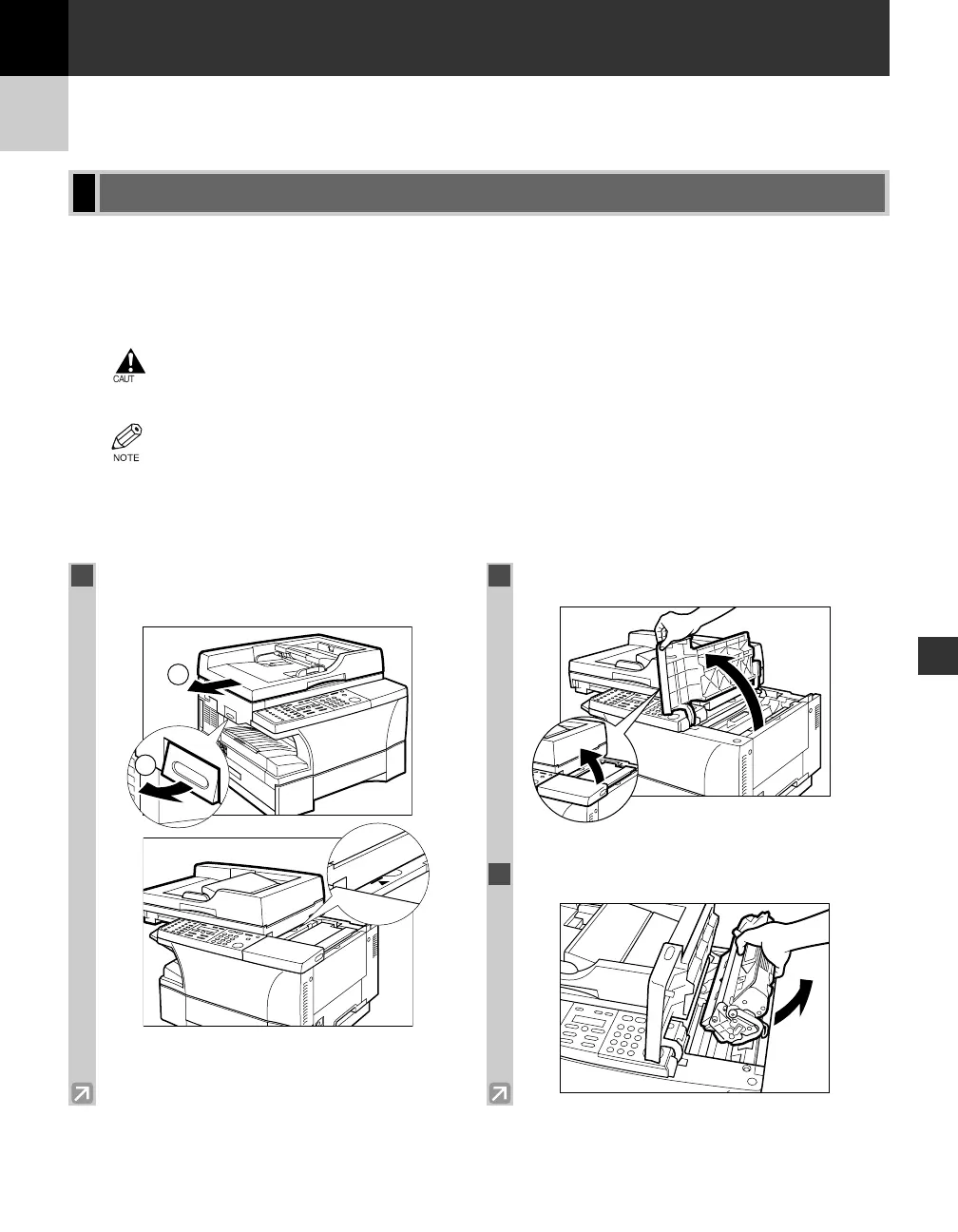the toner on the jammed copy paper to come into contact with your hands or clothing, as this will dirty