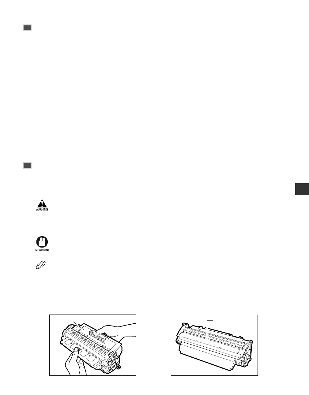 • Do not throw cartridge into open flames, as this may cause the toner to ignite and result in burns
