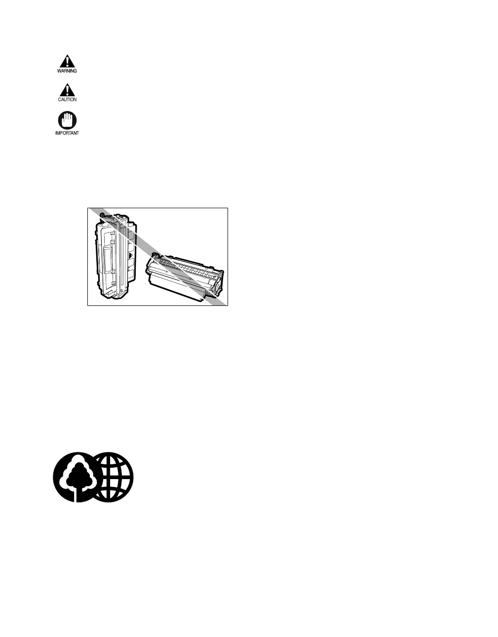 • Do not store cartridges or copy paper in places exposed to open flames, as this may cause the