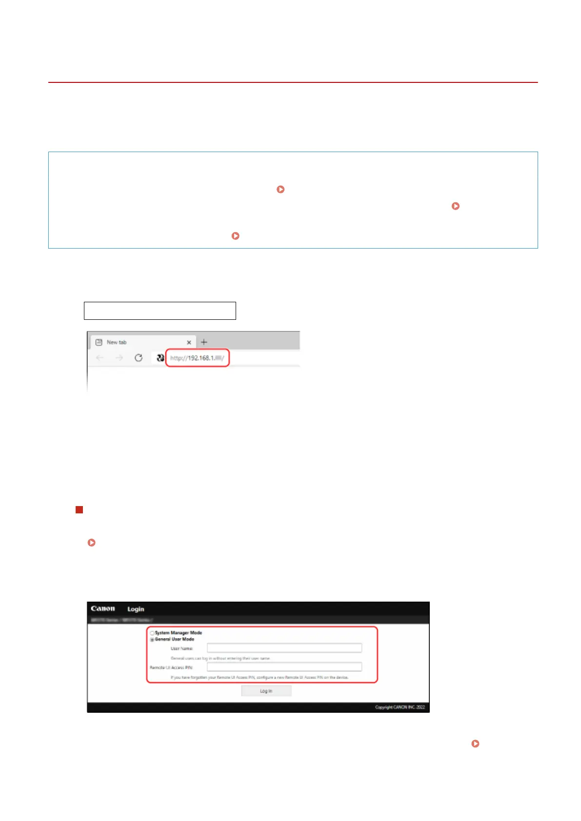 Manager Mode or General User Mode. The functions available with Remote UI vary depending on the mode you