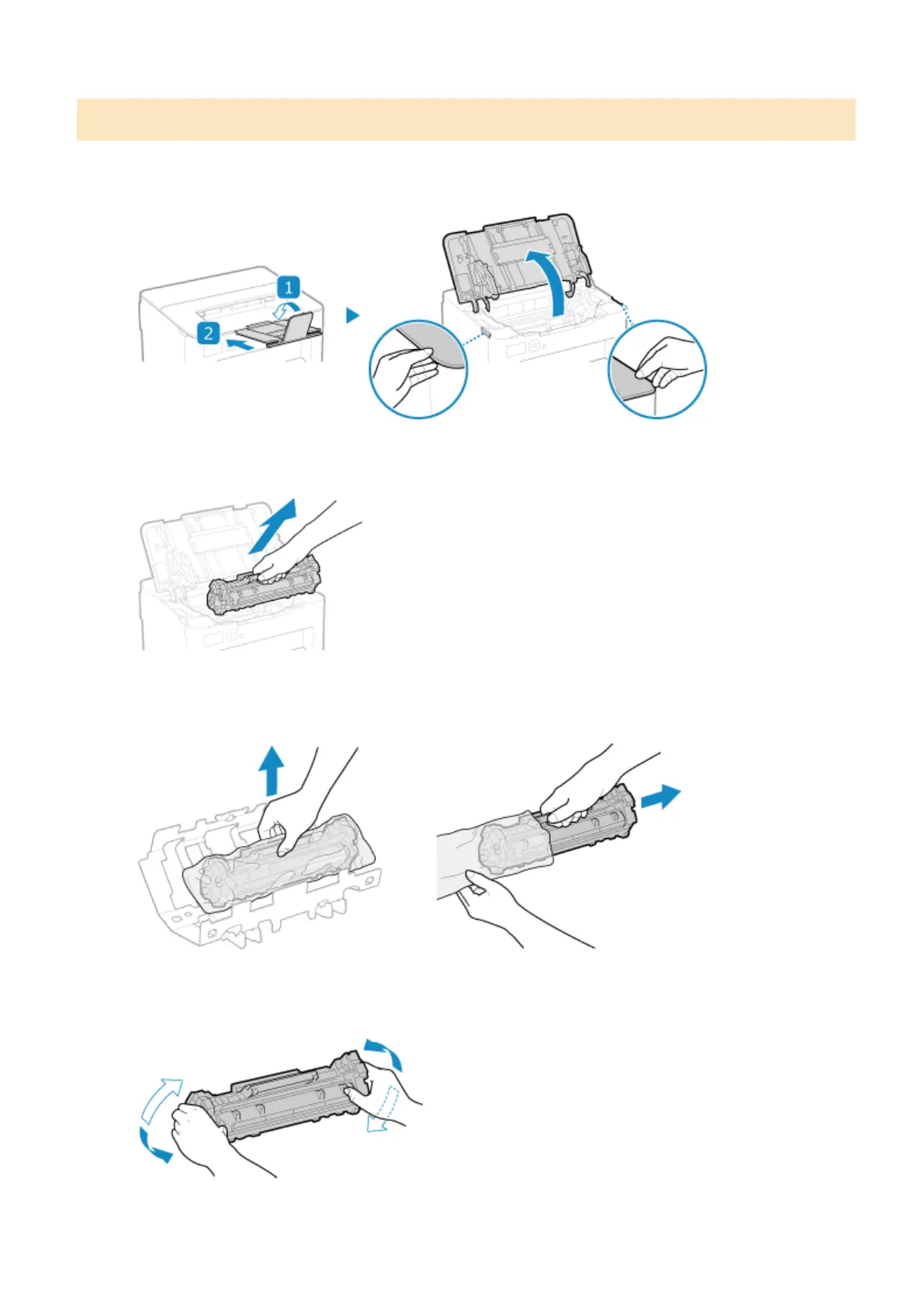 Shake the toner cartridge ve or six times to e