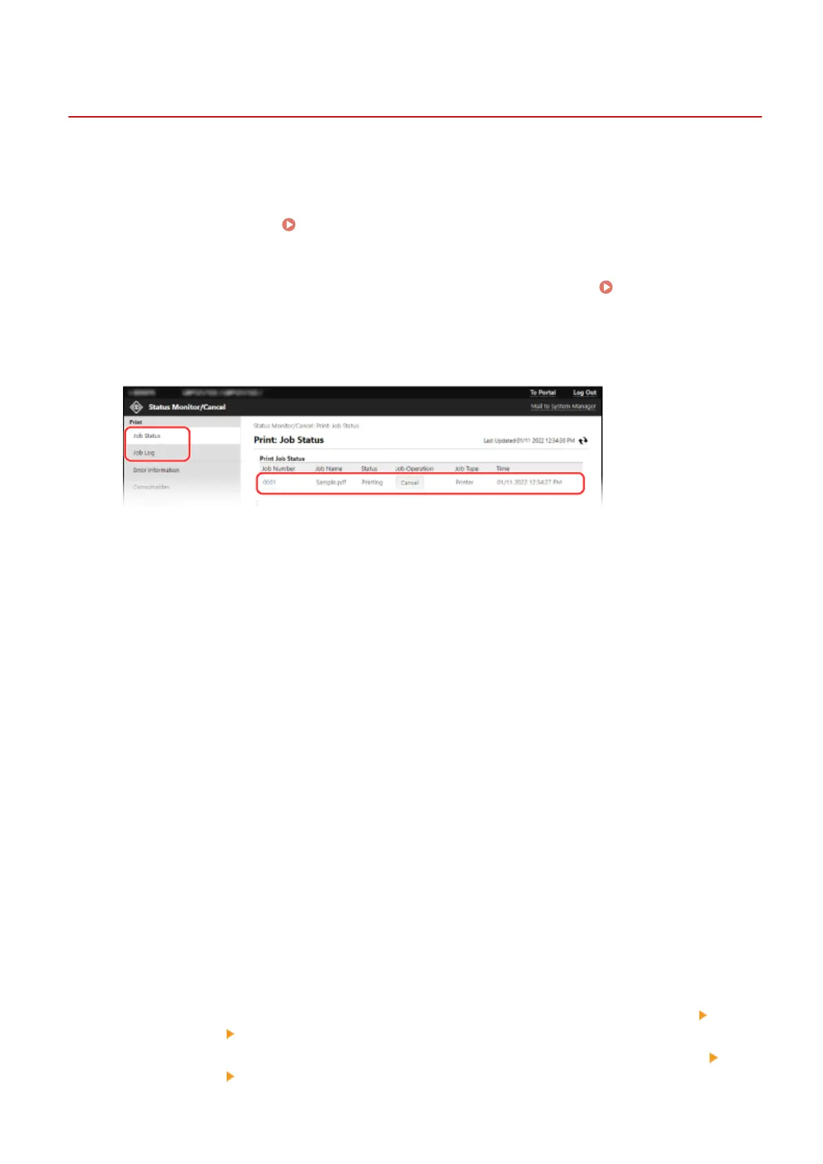 On the Portal page of Remote UI, click [Status Monitor/Cancel]. Portal Page of