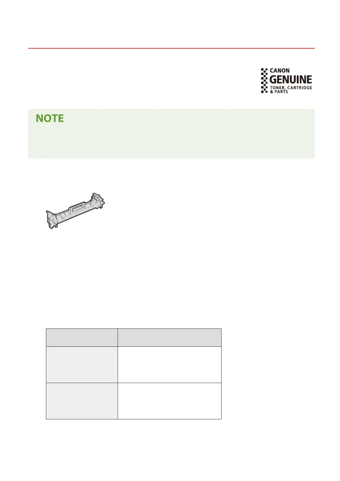 print quality, using Canon genuine Toner, Cartridge and Parts is recommended.