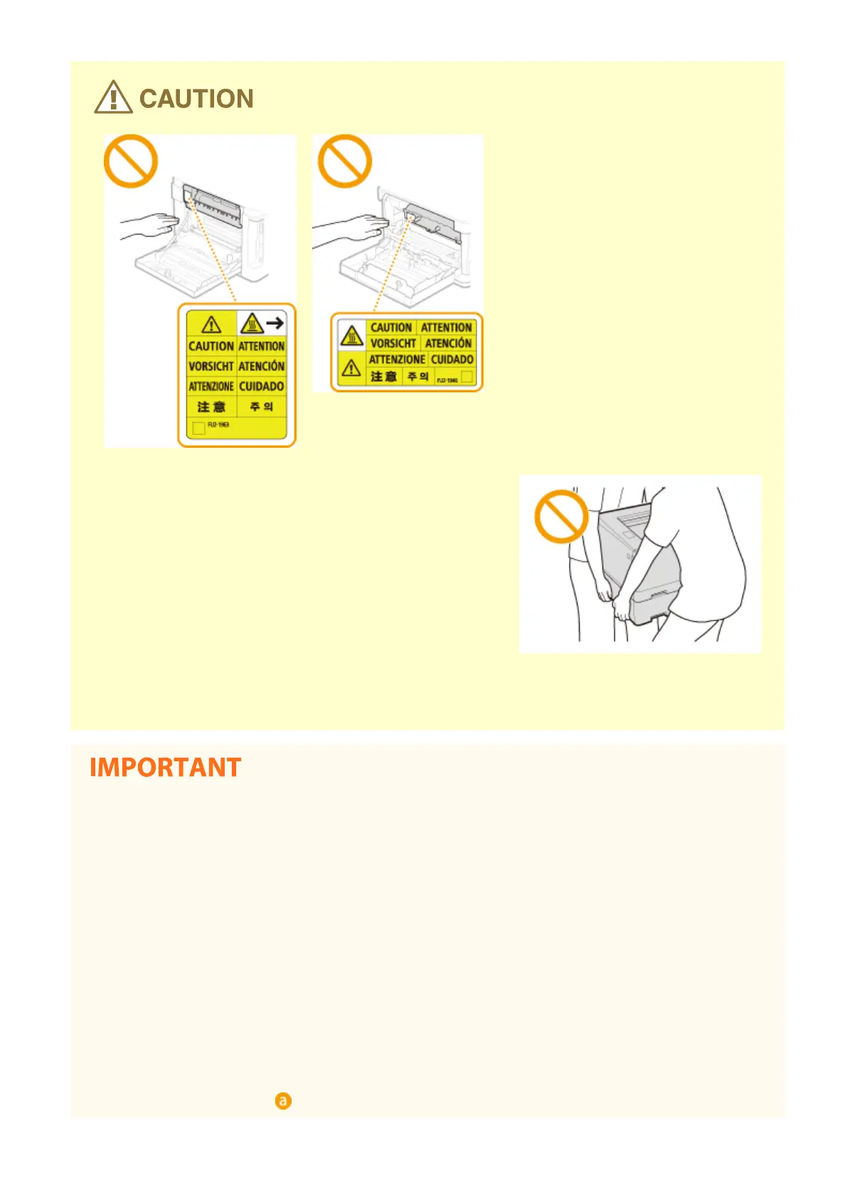 ● Follow the instructions in the caution label attached to this machine.