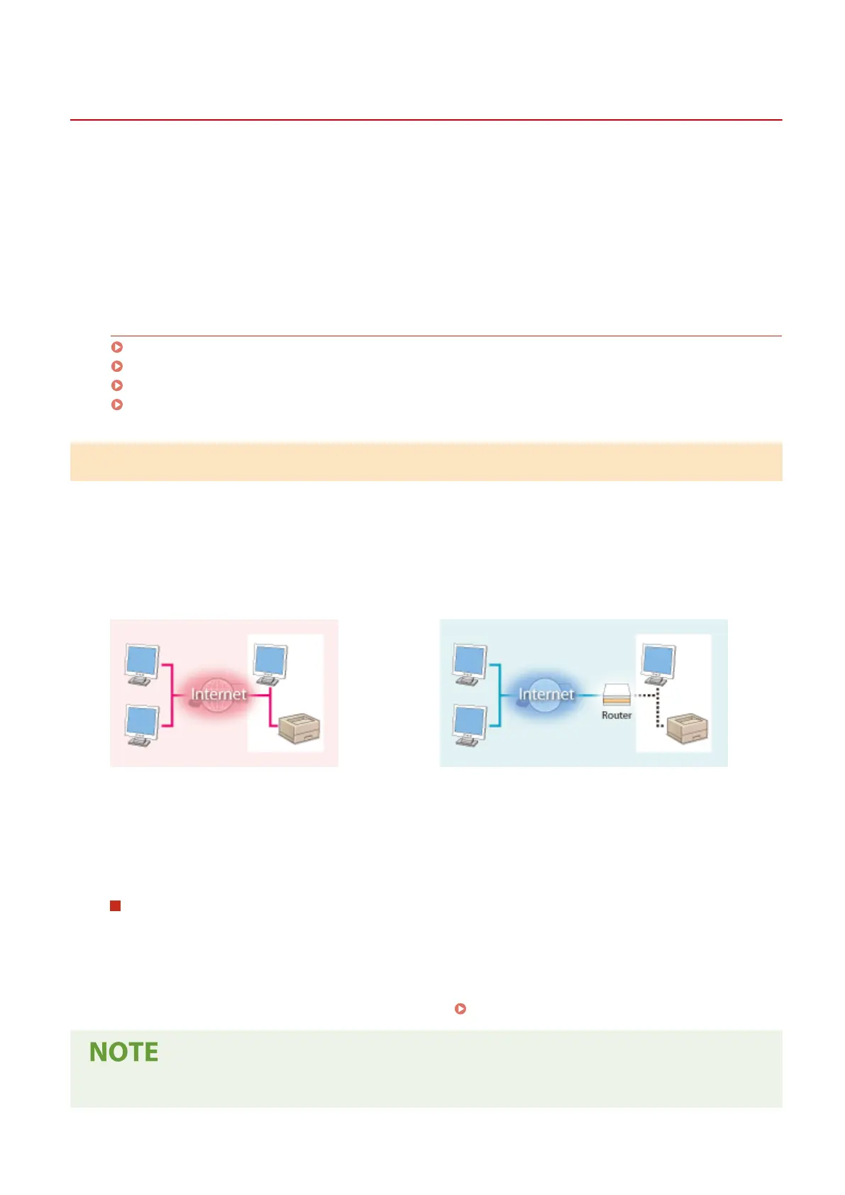 If a global IP address is assigned to a printer/multifunction machine, you can create a network environment