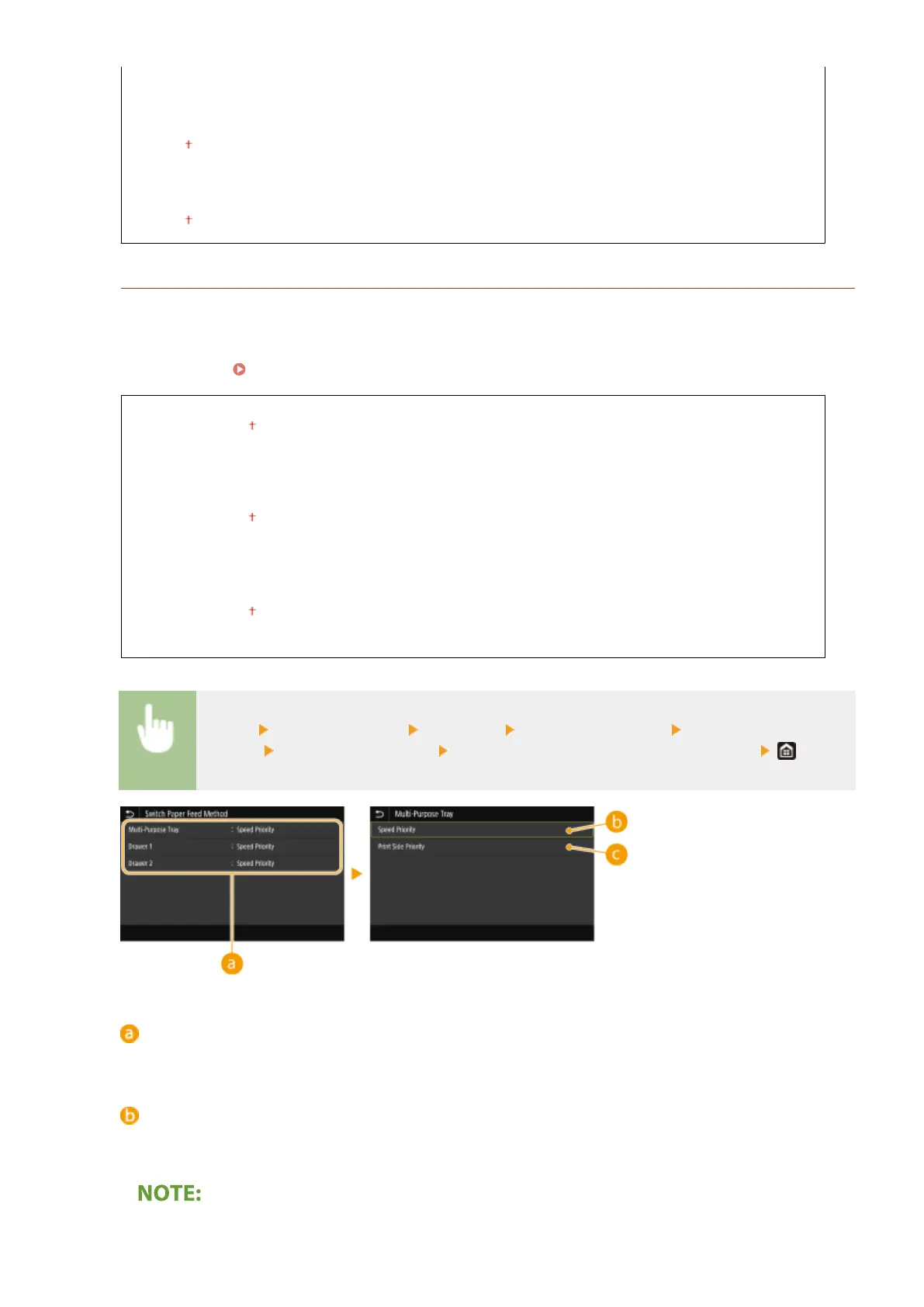 Method> Select the paper source Select <Speed Priority> or <Print Side Priority>