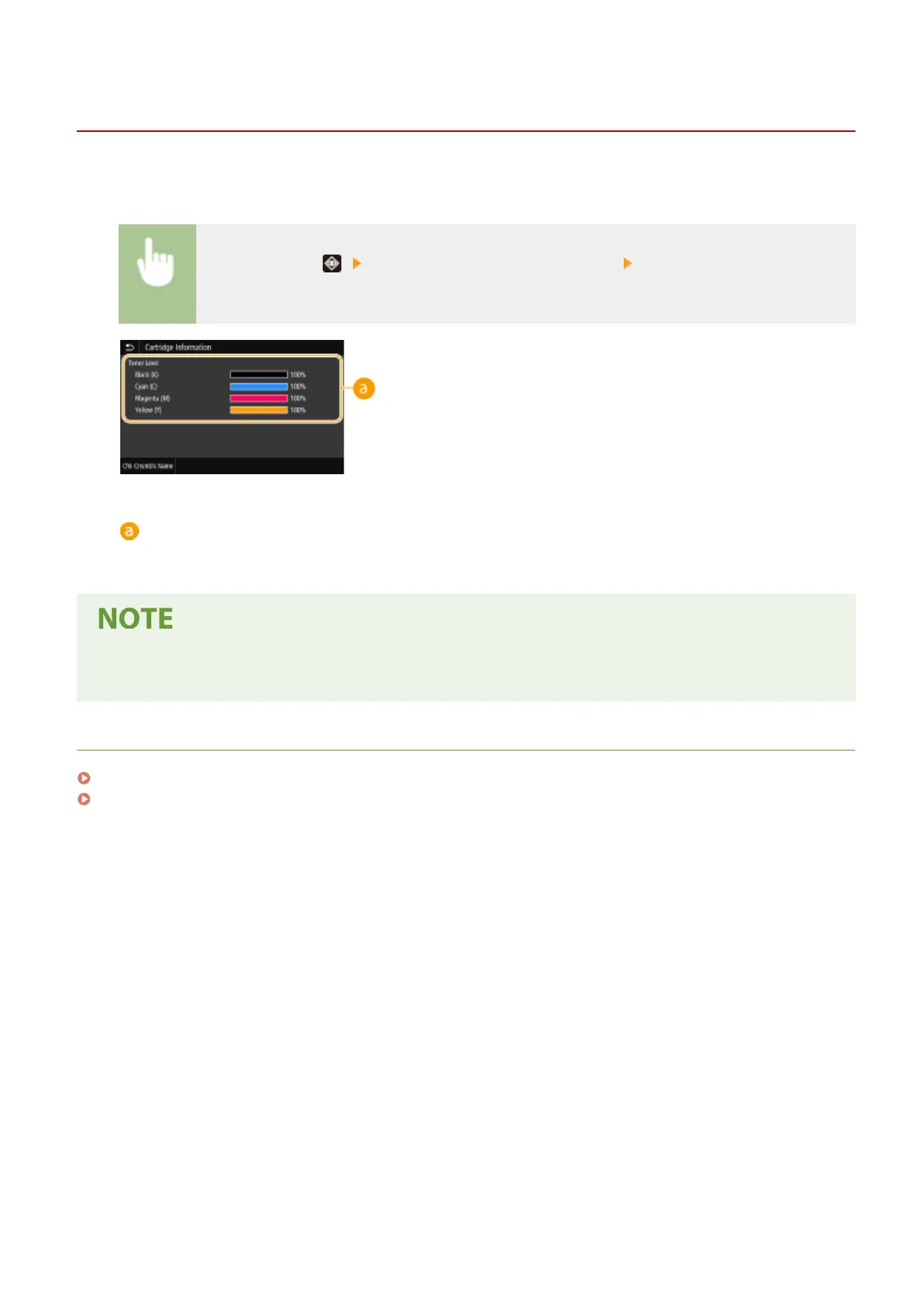 ● The displayed amount remaining in a toner cartridge can be used only as a guide and may differ from the