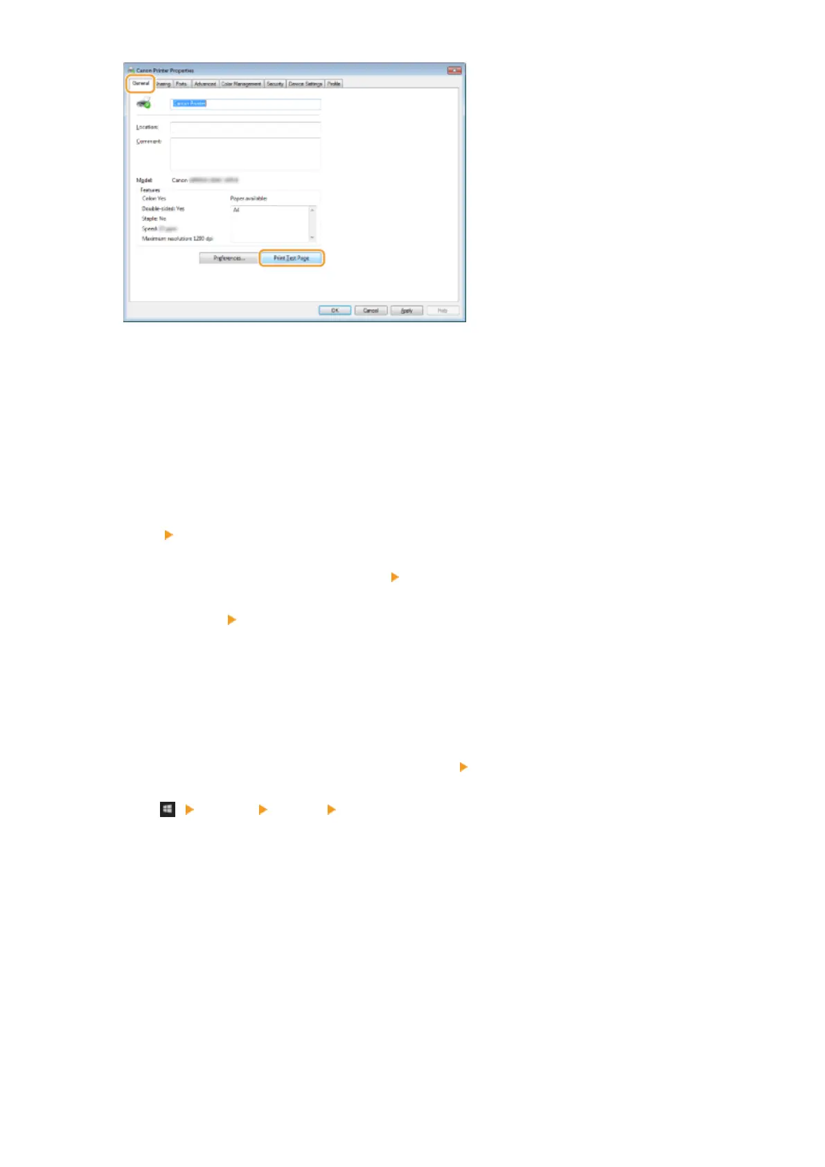 ➠ The test page is printed.