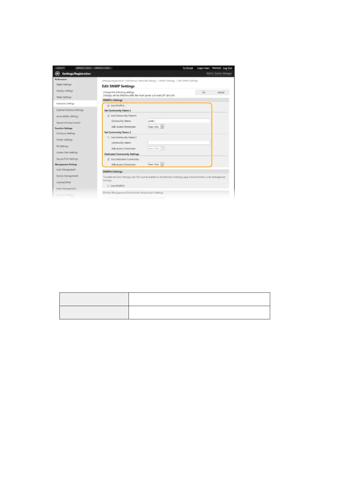 specify [MIB Access Permission]. If you do not need to use Dedicated Community, clear the check box.