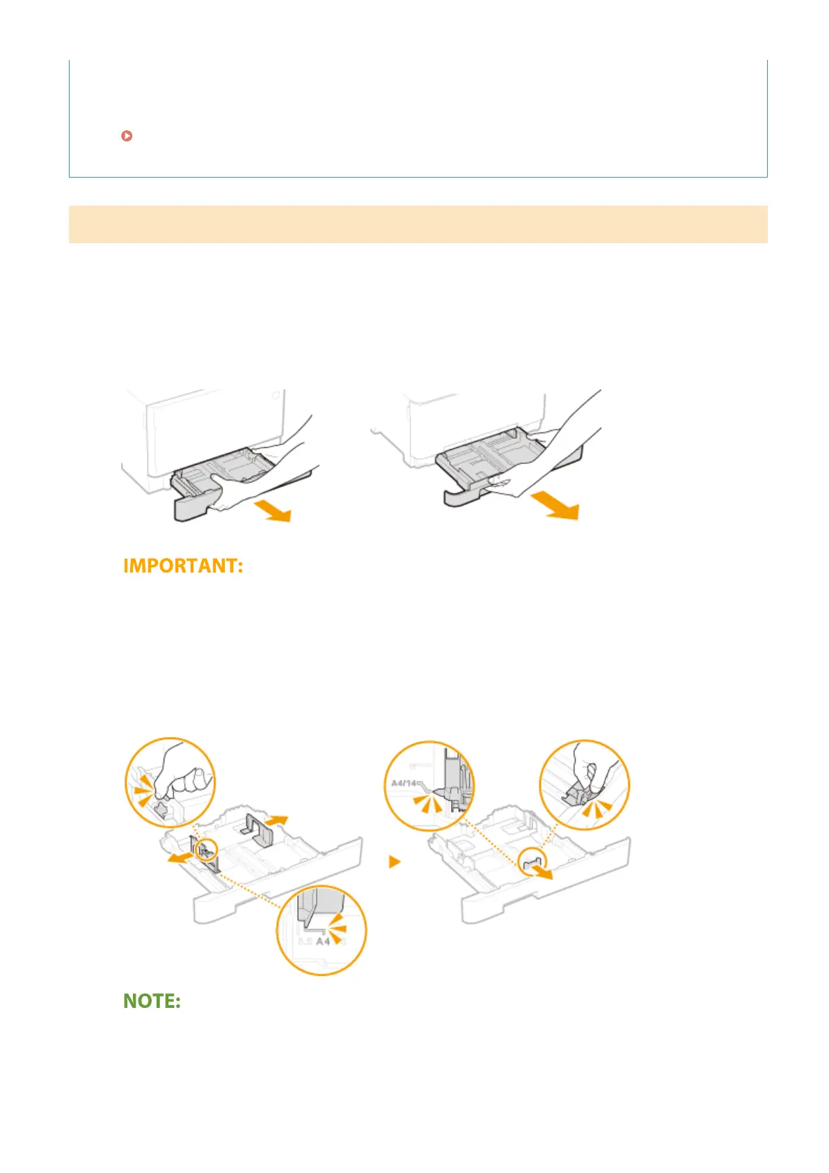 ● Make sure to hold the paper drawer with both hands, and pull it out gently. Otherwise, you may damage