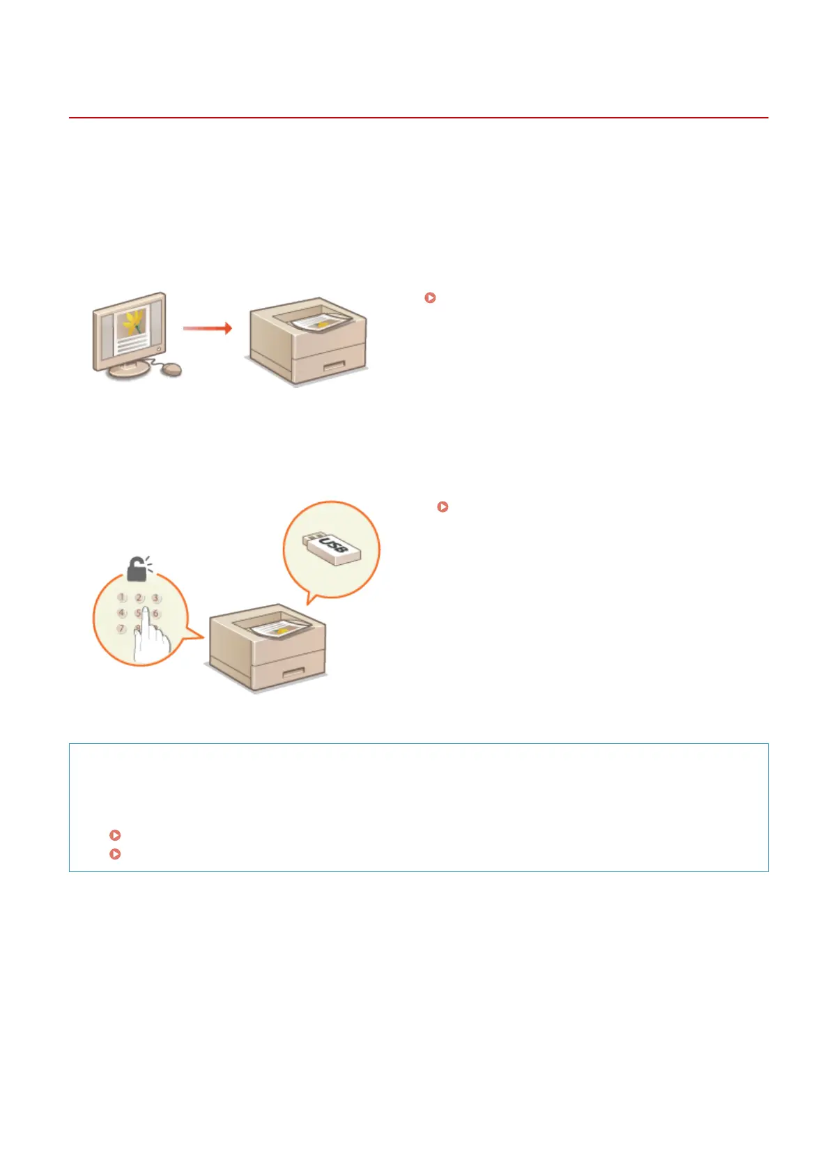 You can assign a PIN to the print data to enhance security or directly print les stored in a USB memory device.