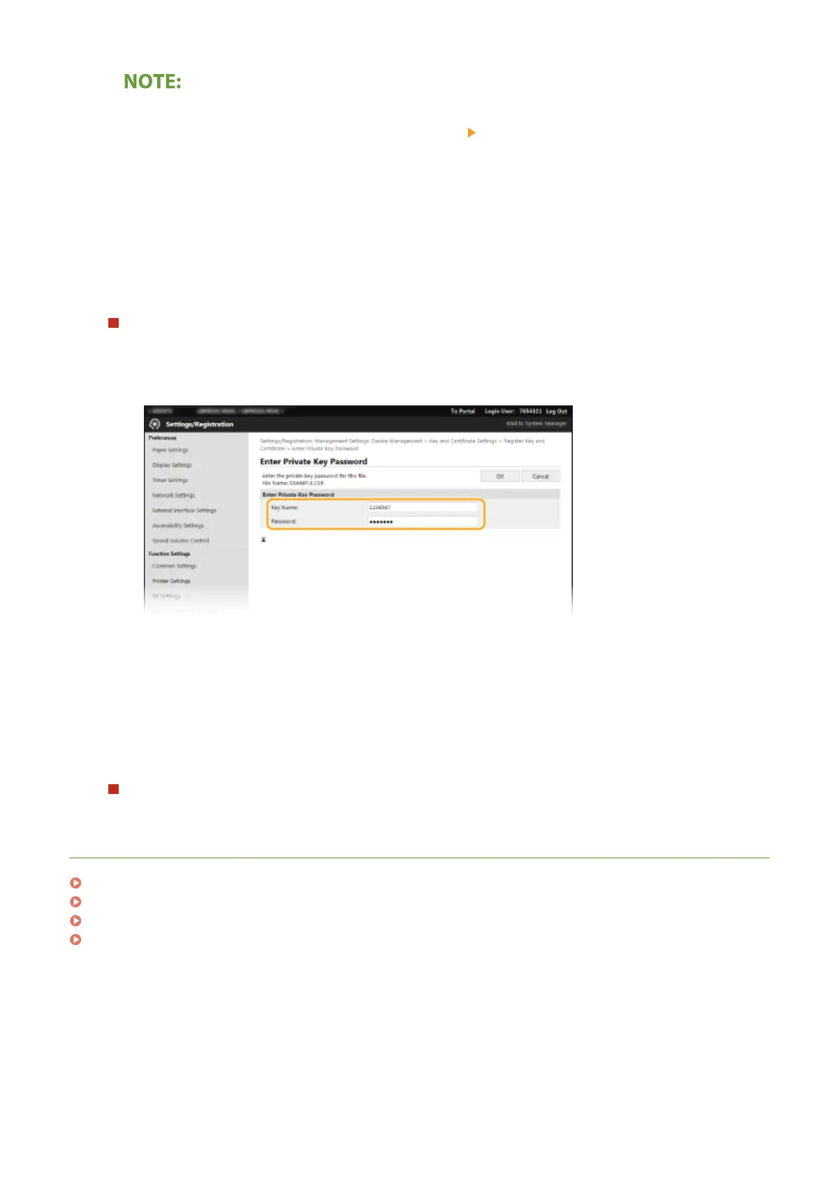 ➠ The key and certicate le or the CA certicate le is installed on the machine from a computer.