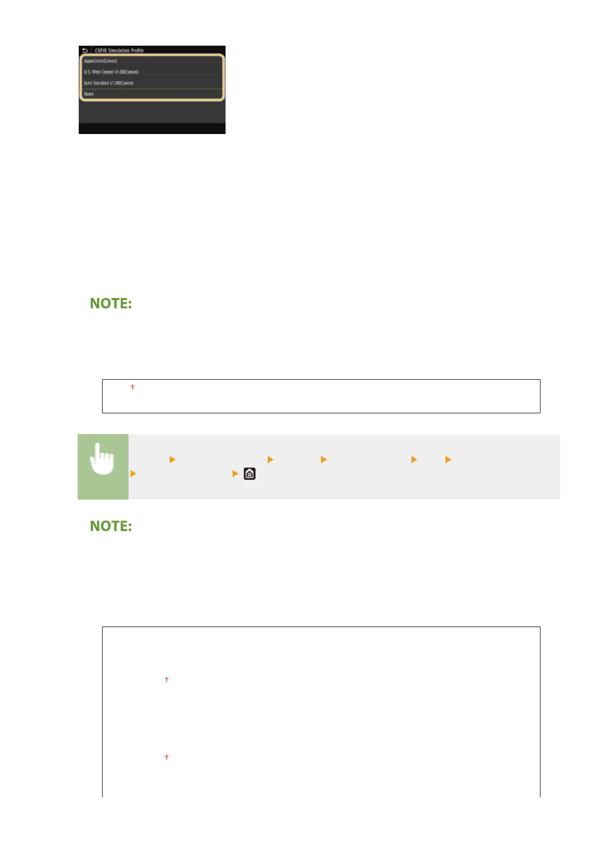 ● Even if <On> is selected, data is printed using only the K (black) toner depending on the setting of <Output