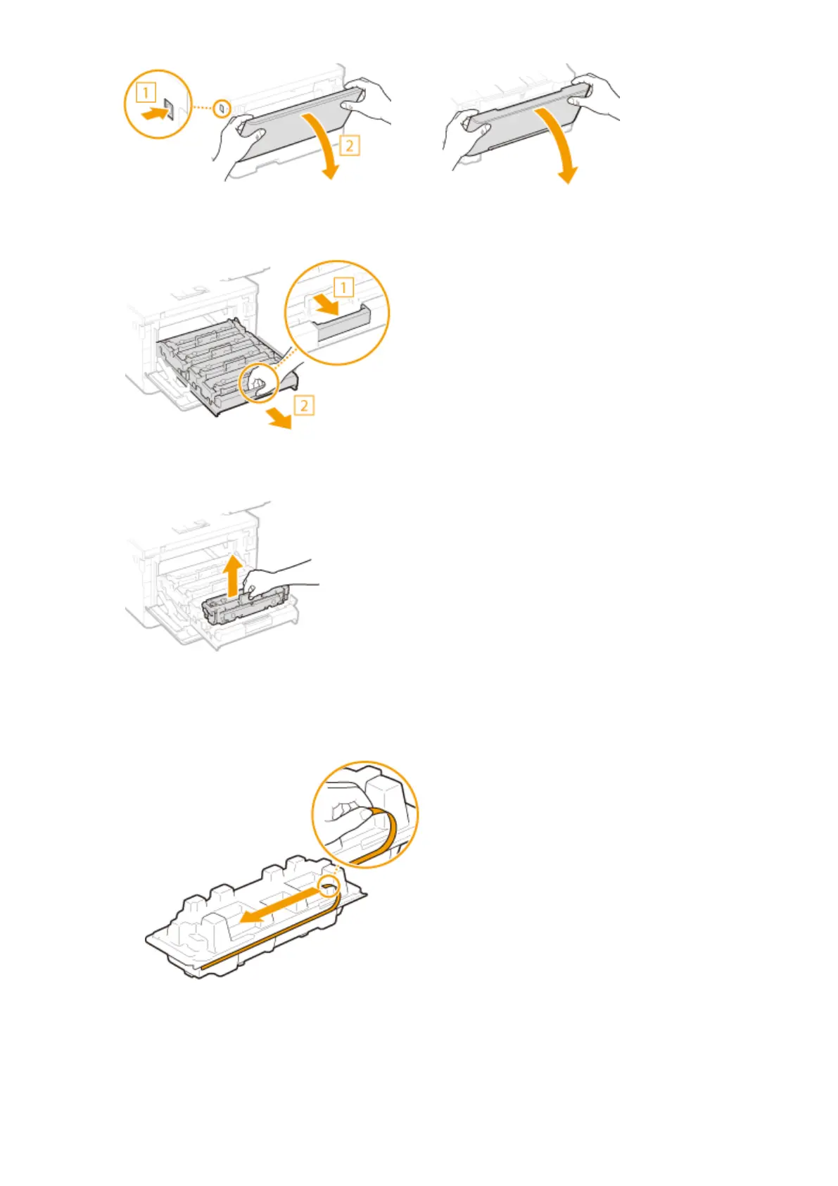 Remove the replacement toner cartridge from the packing material.