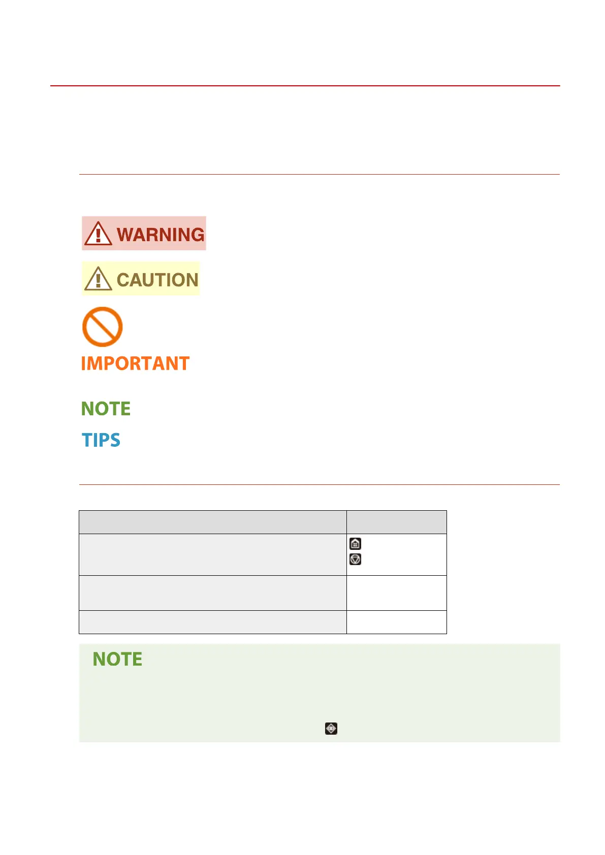 This section describes the marks, buttons, screens, and other items used in the User's Guide. The warnings and
