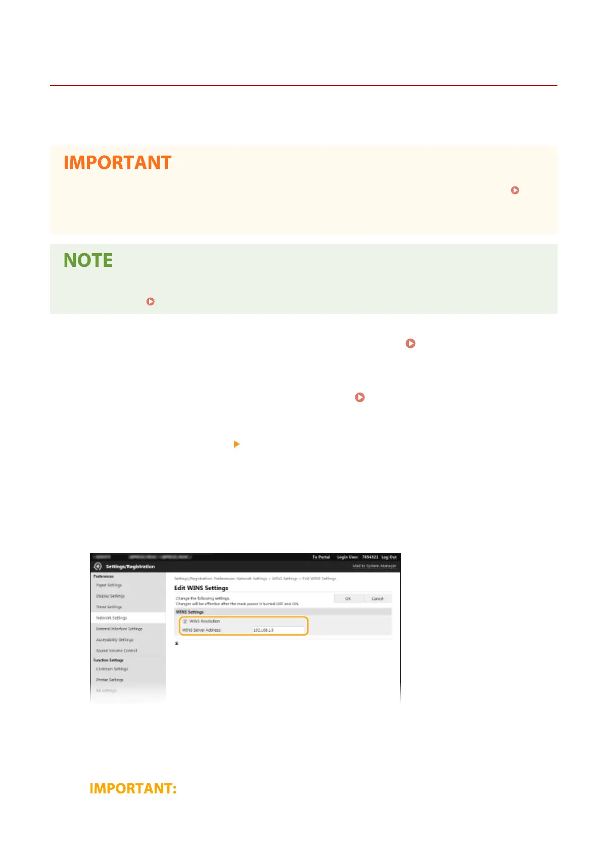 ● In order to specify WINS server settings, NetBIOS name and workgroup name are required to be set.