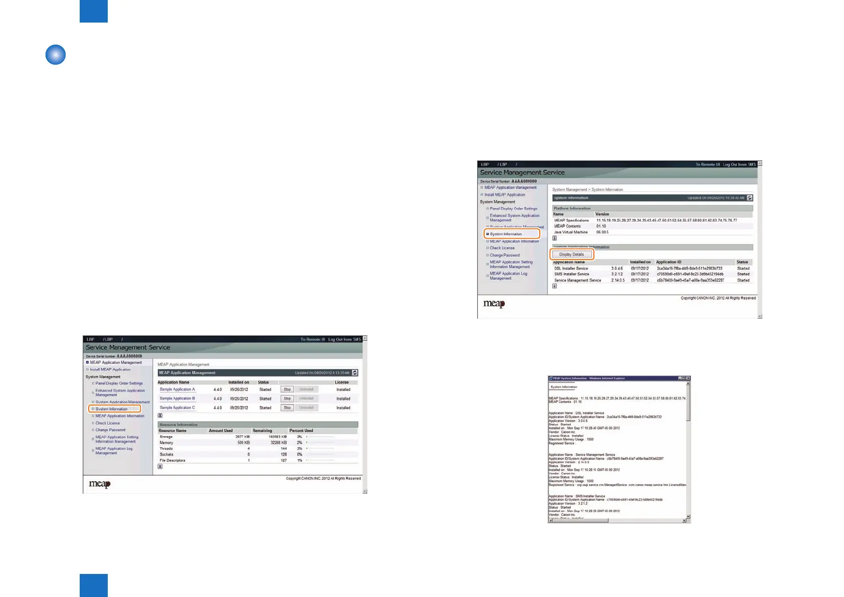 Technology > MEAP > System Information > Display of System Information Details