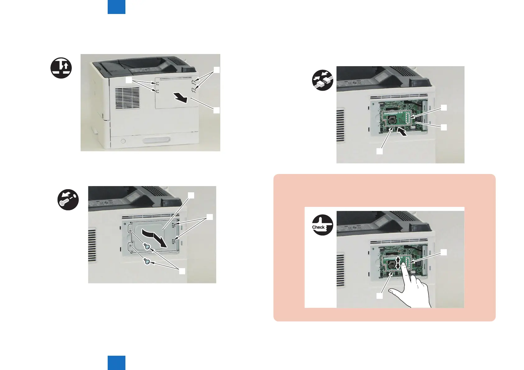 4) Install the Sublog Board [1] attached with the Expansion ROM for servicing to the Main