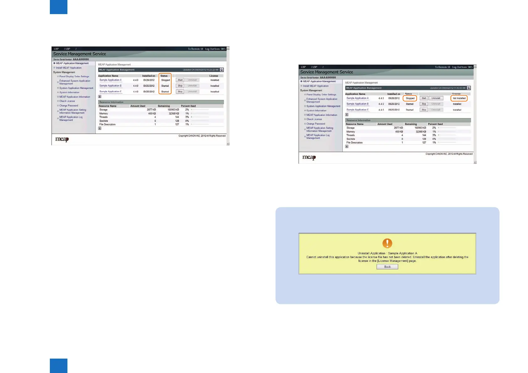 If the license le of the selected application cannot be deleted, the [Uninstall] button is