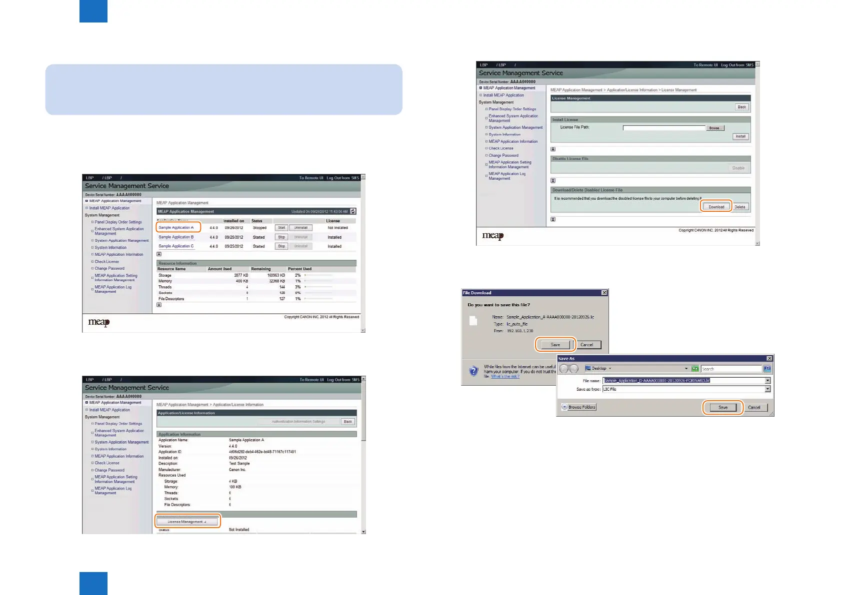 The downloaded license le can be used for reinstallation only in the same iR device