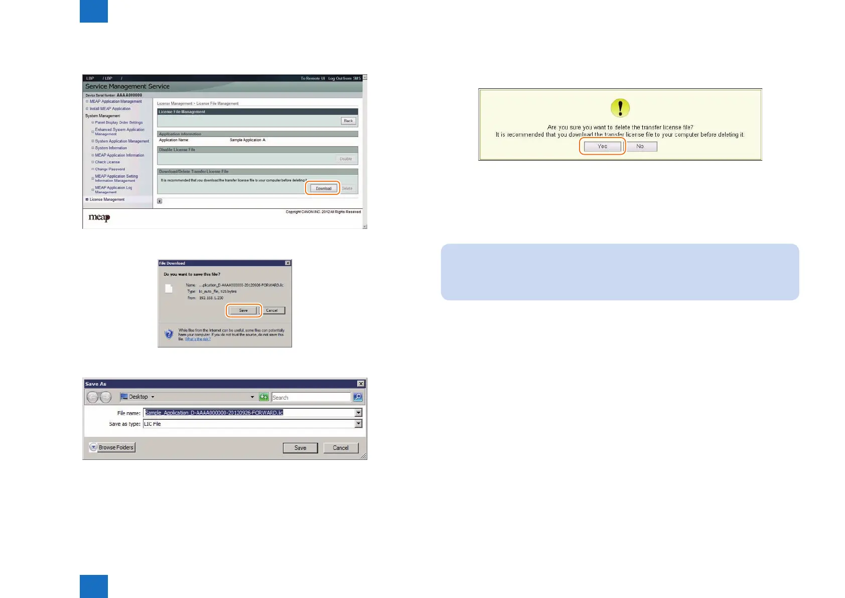 9) After downloading the license le for forwarding, click [ Delete ] to display the conrmation