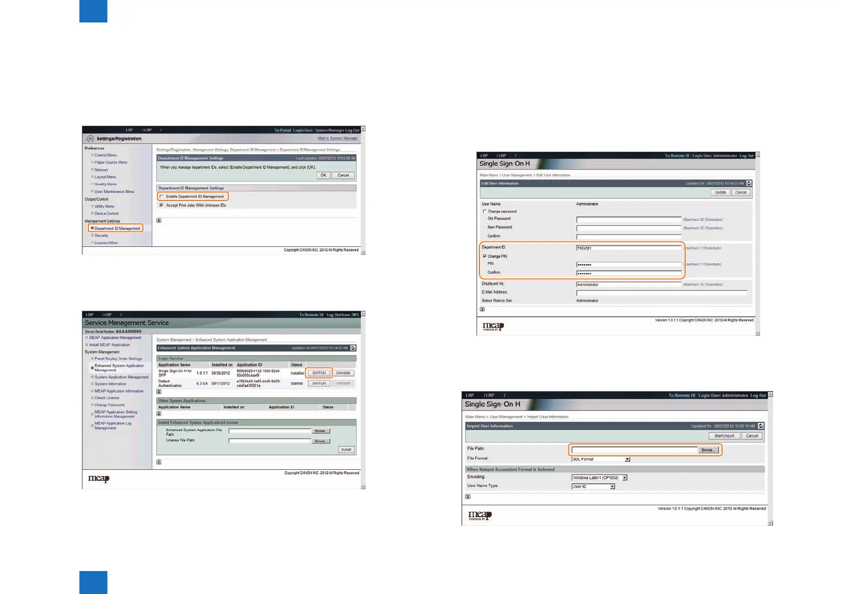 Registration] > [Management Settings] > [User Management] > [Department ID