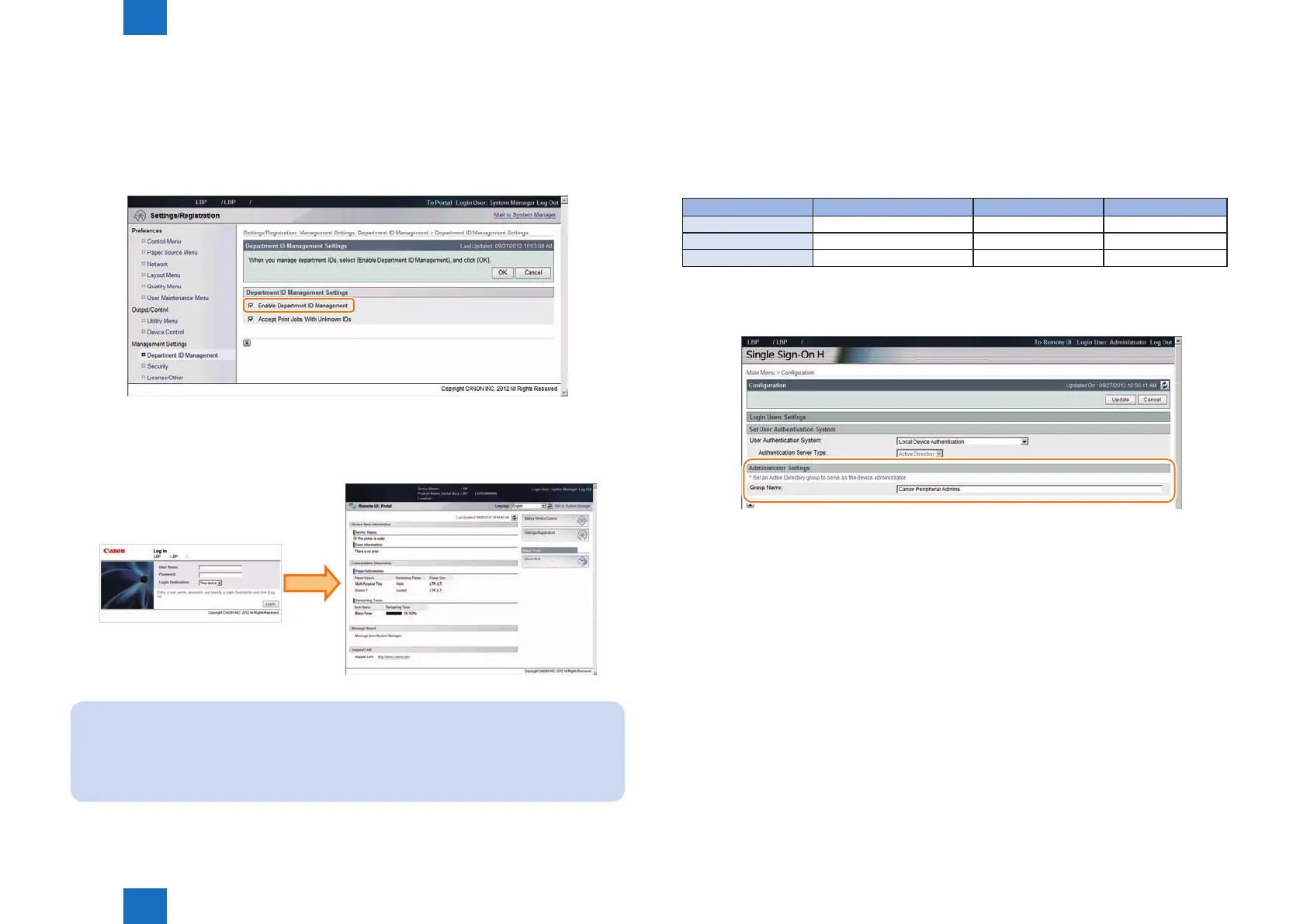 (users belonging to Canon Peripheral Admins group). However, SSO-H does not support this