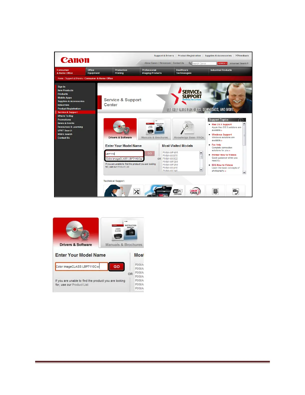 3) EnterLBP7110intothesearchbox,andthenselectitfromthelistthatappears.