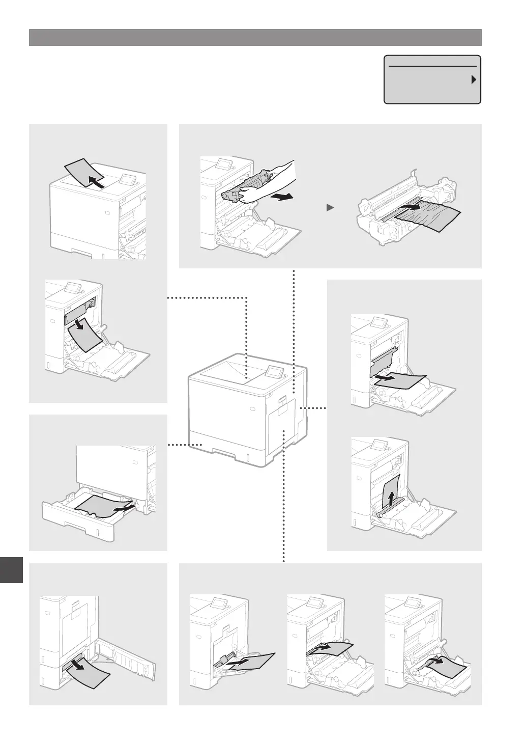 manual indicates only the areas where paper jams occur. For details on each function, see the