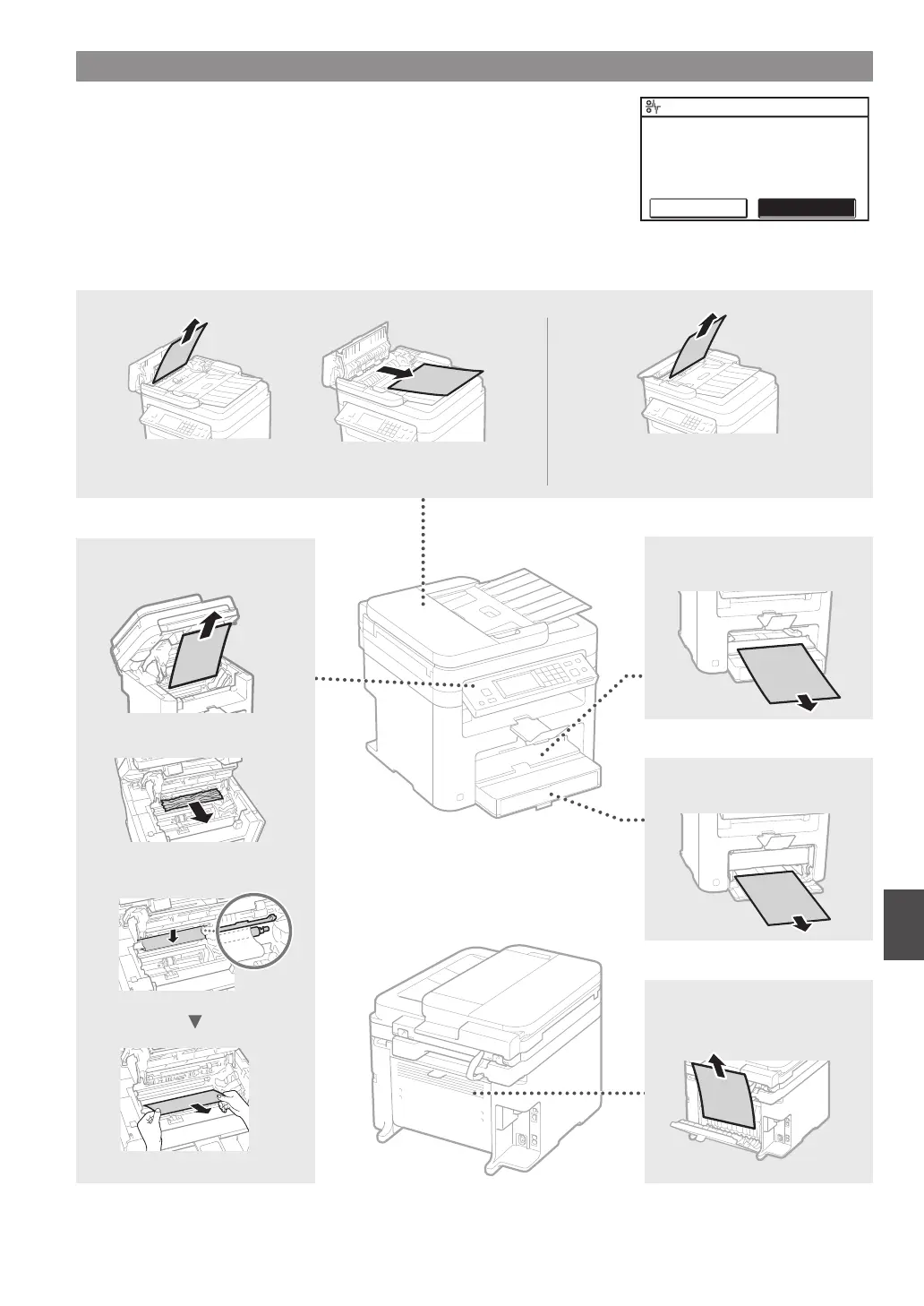 Lorsque l’écran suivant s’a che, cela signi e qu’un bourrage de papier s’est produit dans