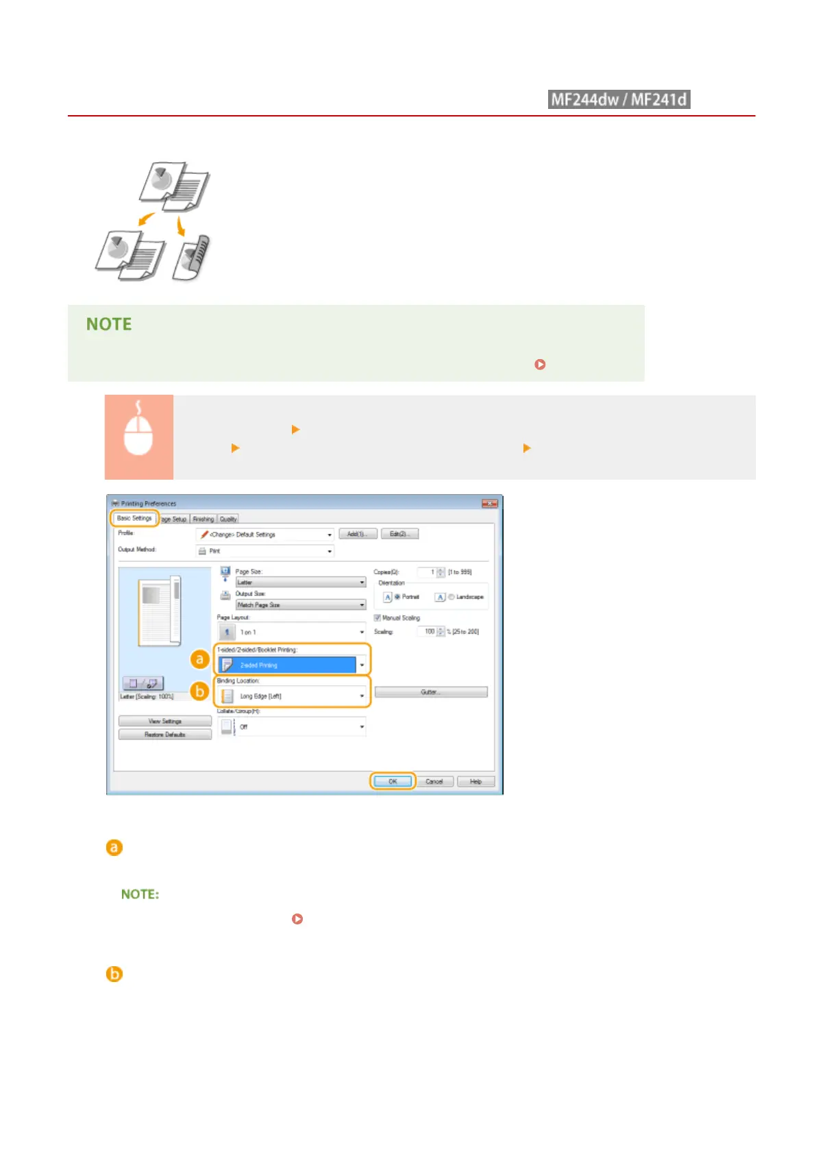 ● For [Booklet Printing], see Printing Booklet (MF244dw / MF241d)(P. 106) .