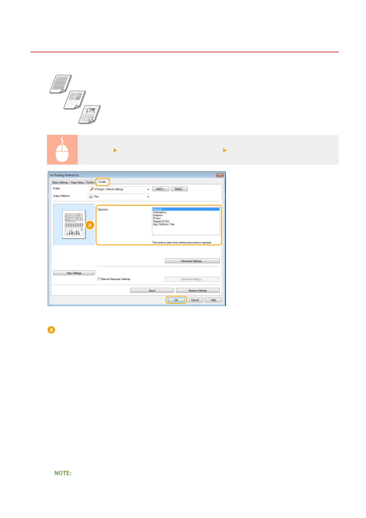 Select an option that suits the document type or purpose of printing. For example, select [General] for
