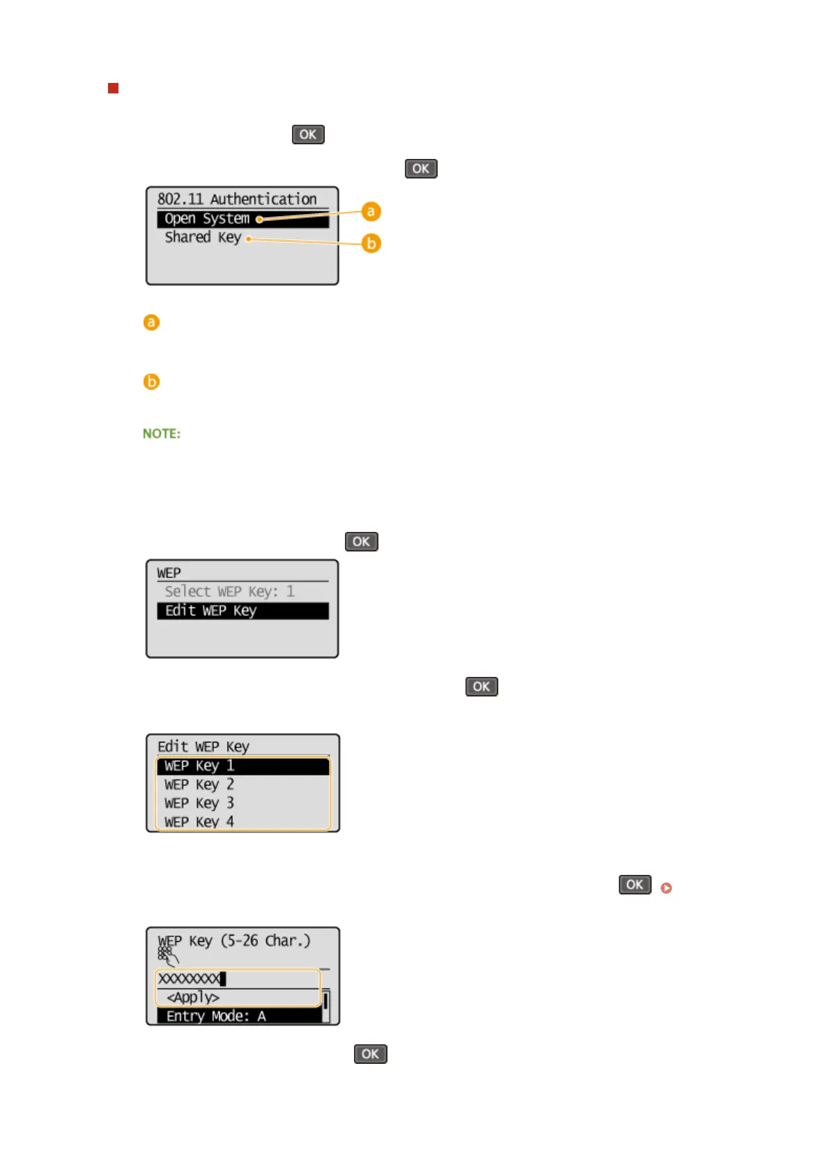 ● Enter the network key using the numeric keys, and select <Apply>, and press . Entering