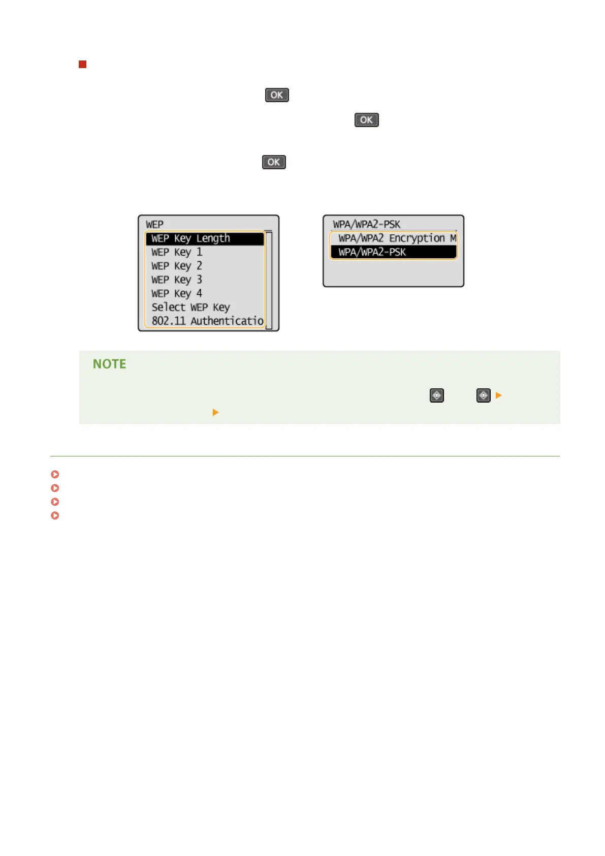 Conrm and select the current security setting, and press .