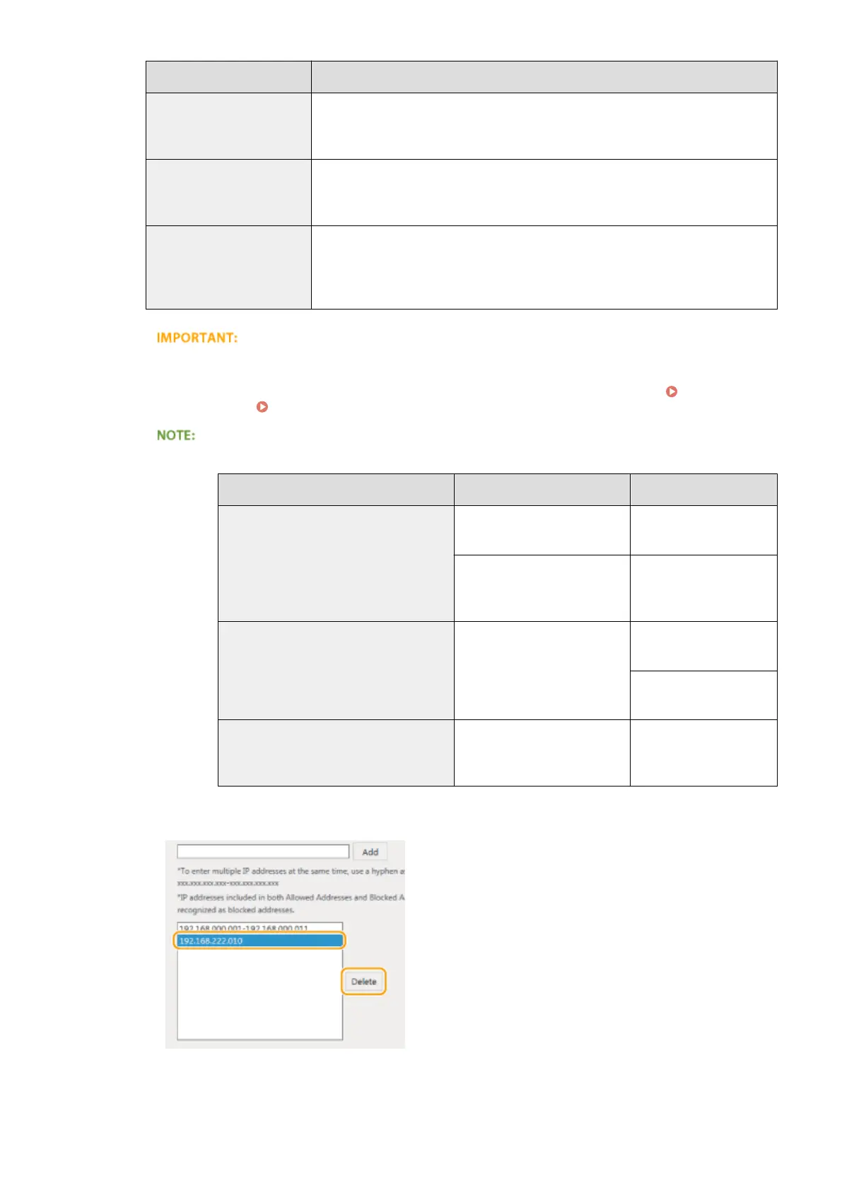 Select an IP address and click [Delete].