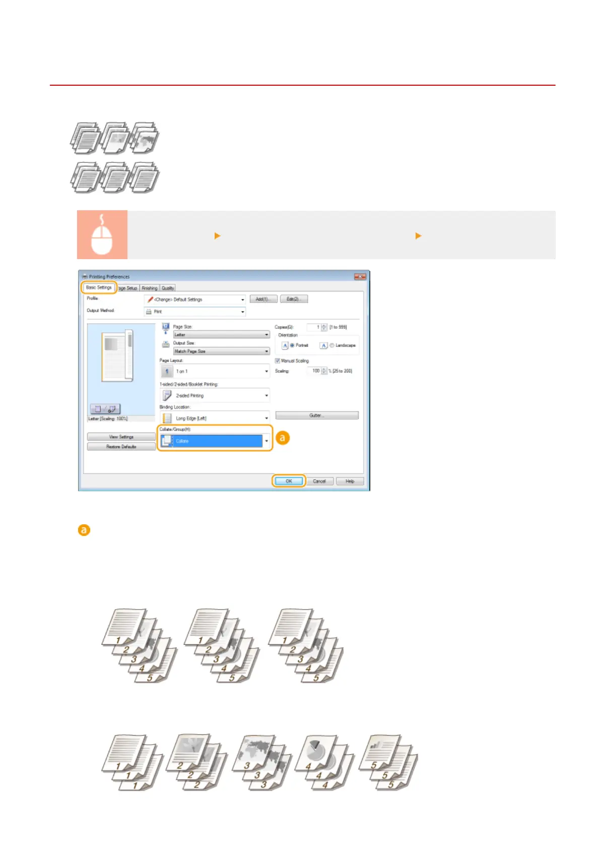 [Basic Settings] tab Select [Collate] or [Group] in [Collate/Group] [OK]