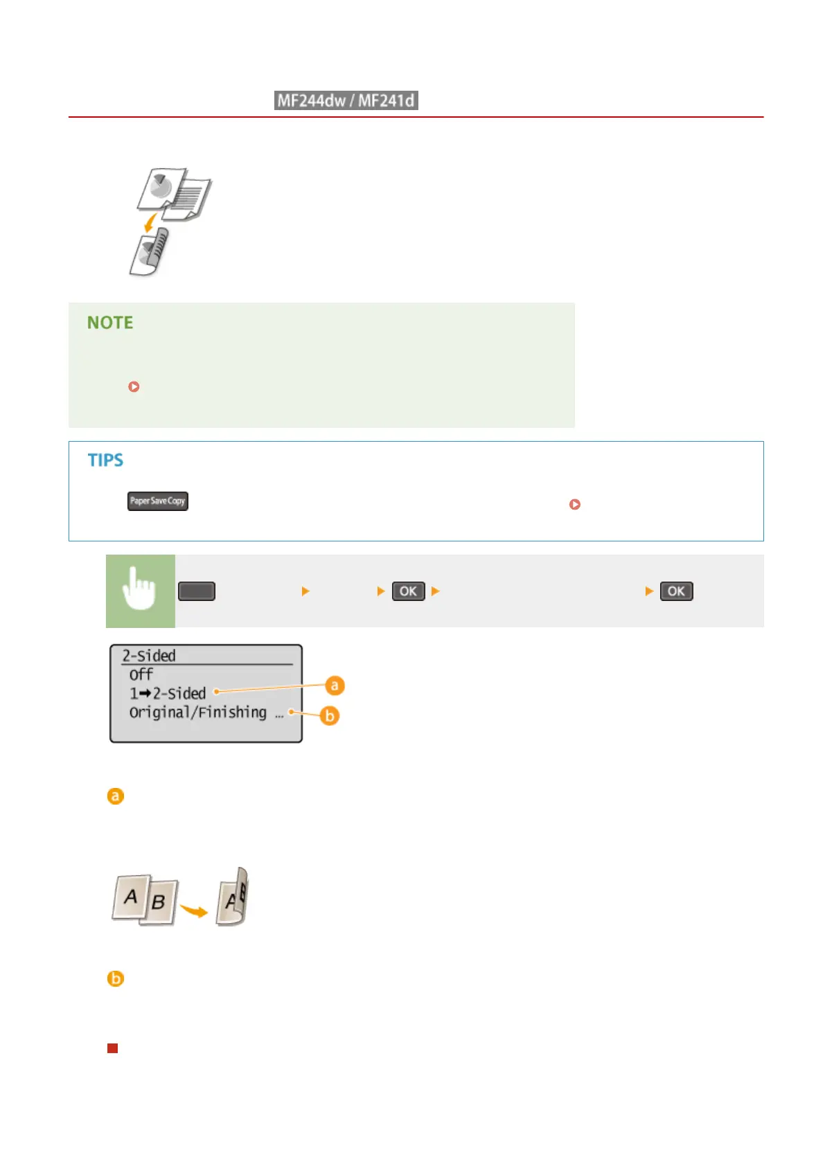 Using enables you to combine 2-sided copying and <2 on 1>/<4 on 1>: Using the [Paper Save