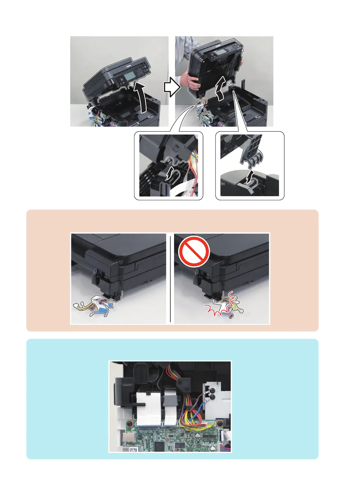 When placing the units, do NOT damage the Flat Cable and the Harness.