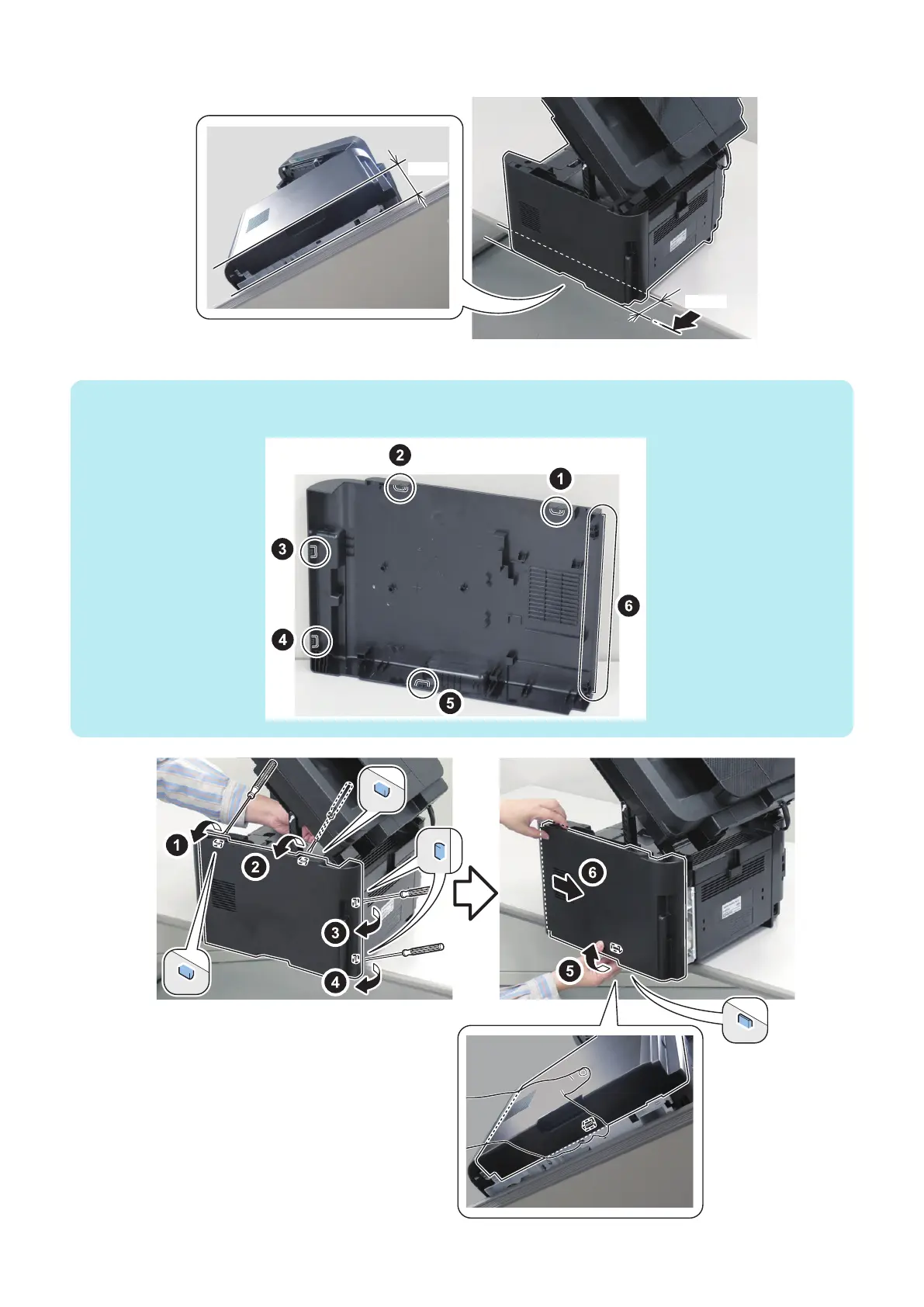 The following shows the locations of the 5 claws and the rib of the Right Cover.