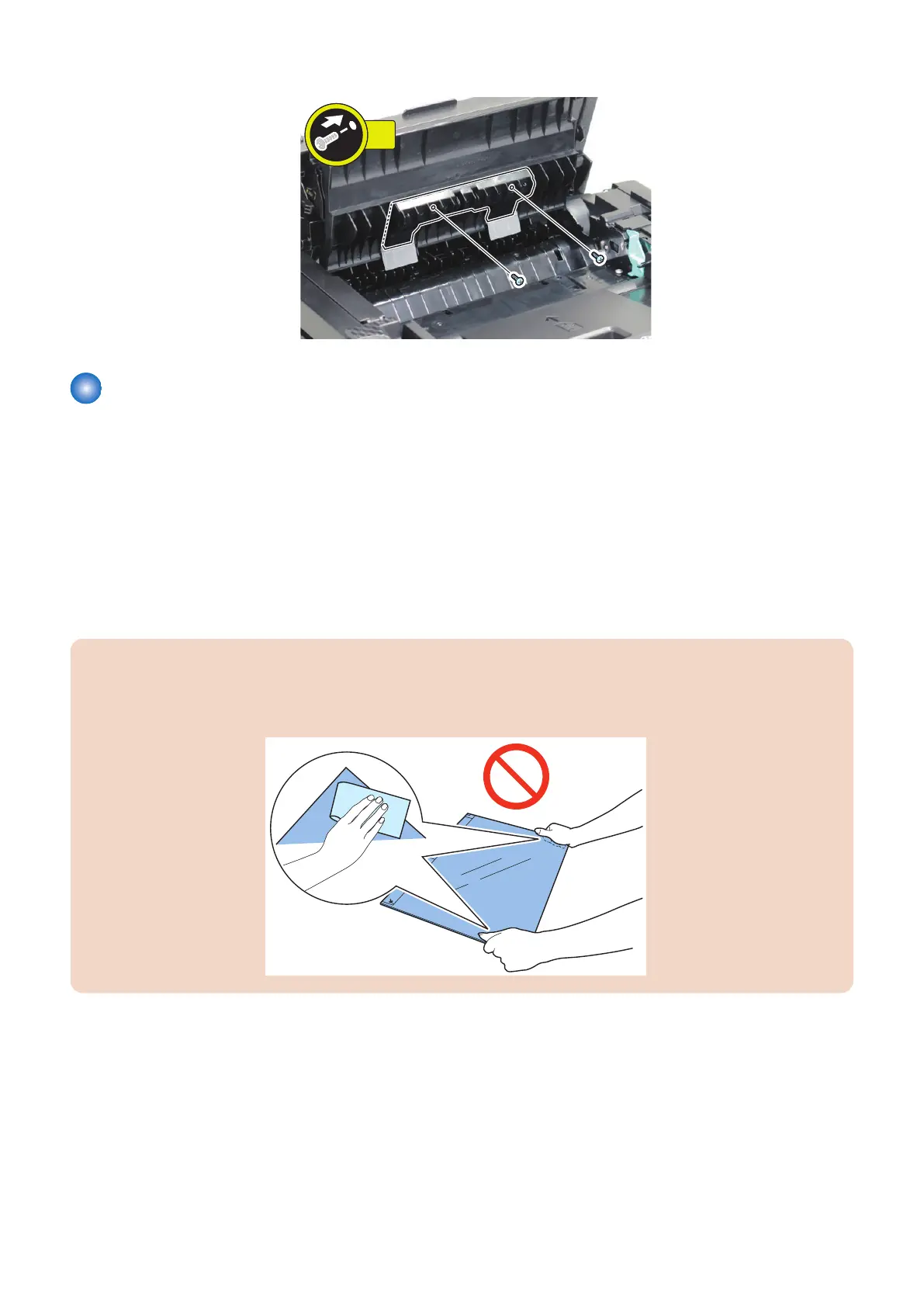 • Be sure to place the removed Copyboard Glass on a cloth, etc. to avoid damaging the bottom sheet.