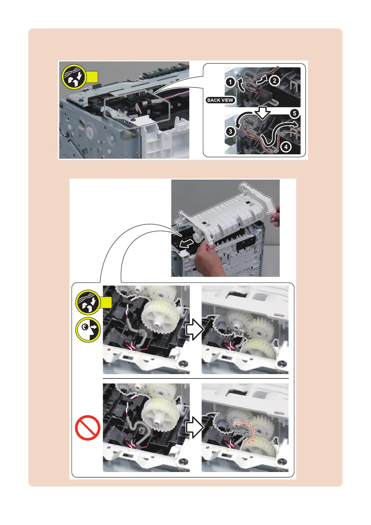 Pass the harness through the guide to prevent the harness from interfering with the gear.