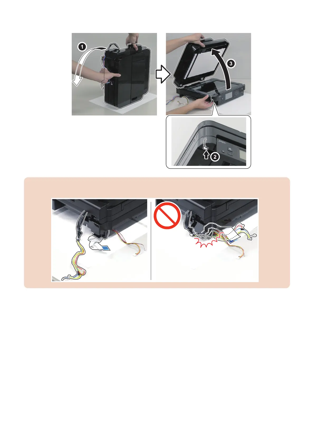 When placing the units, do NOT damage the Flat Cable and the Harness.