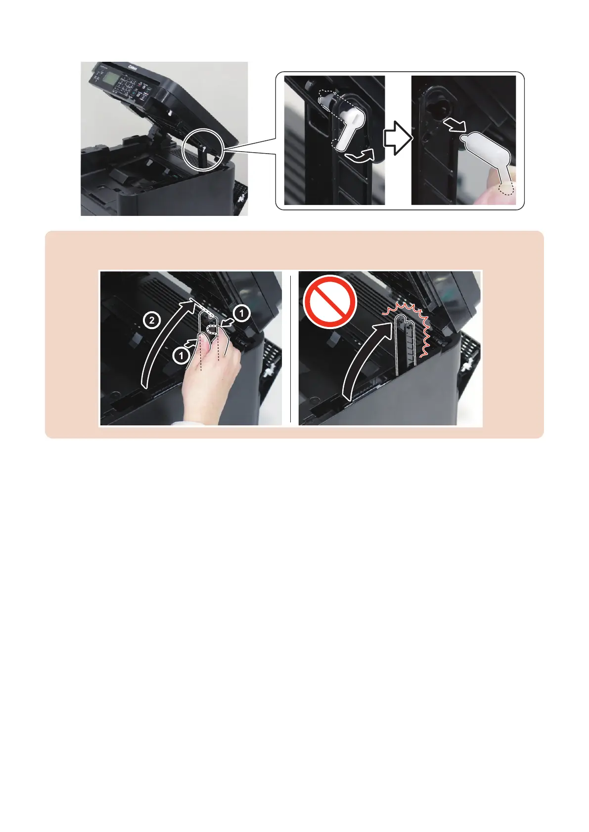 When opening or closing the Hinge Arm, move it slowly because the pressure is strong.