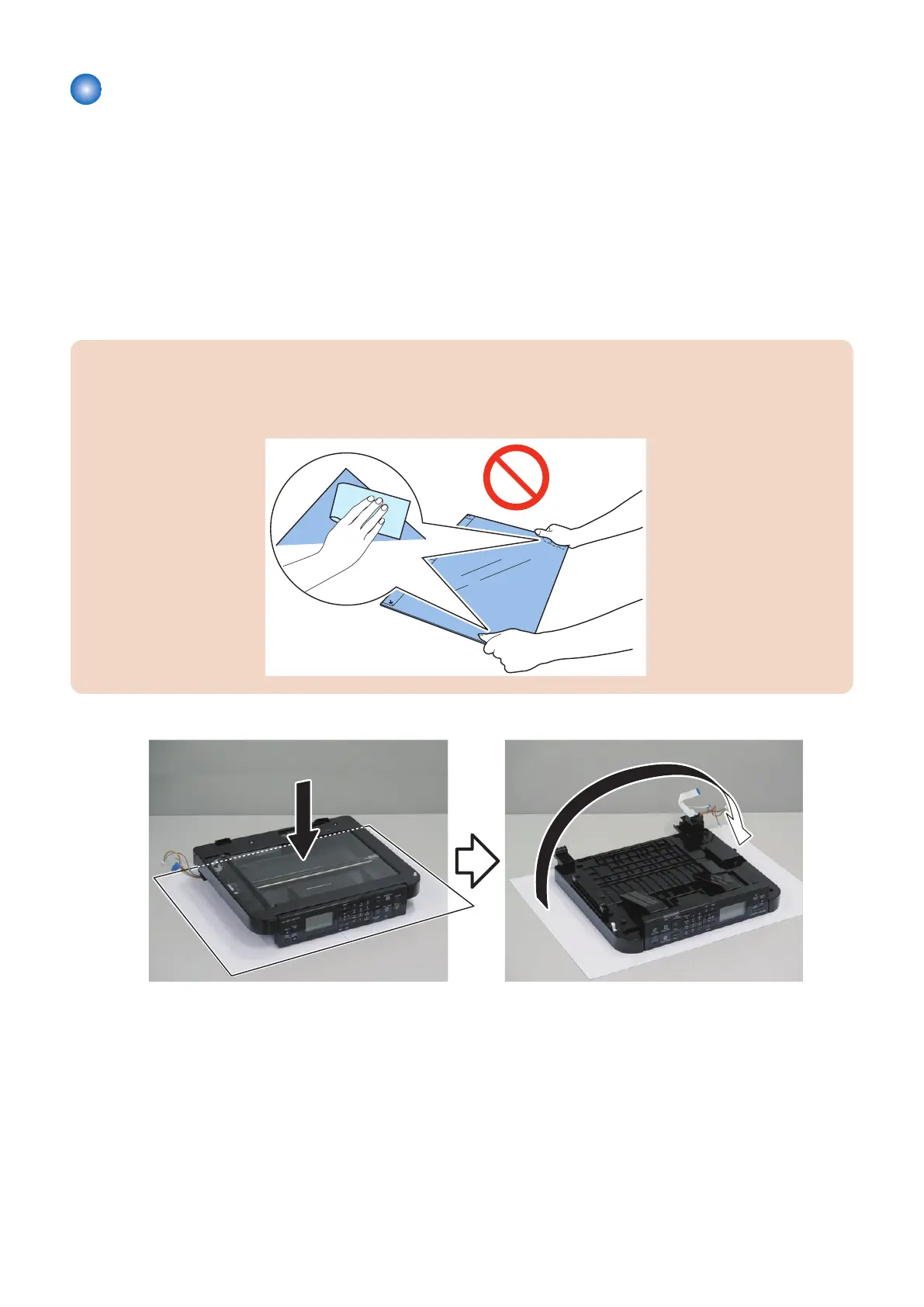 • Be sure to place the removed Copyboard Glass on a cloth, etc. to avoid damaging the bottom sheet.