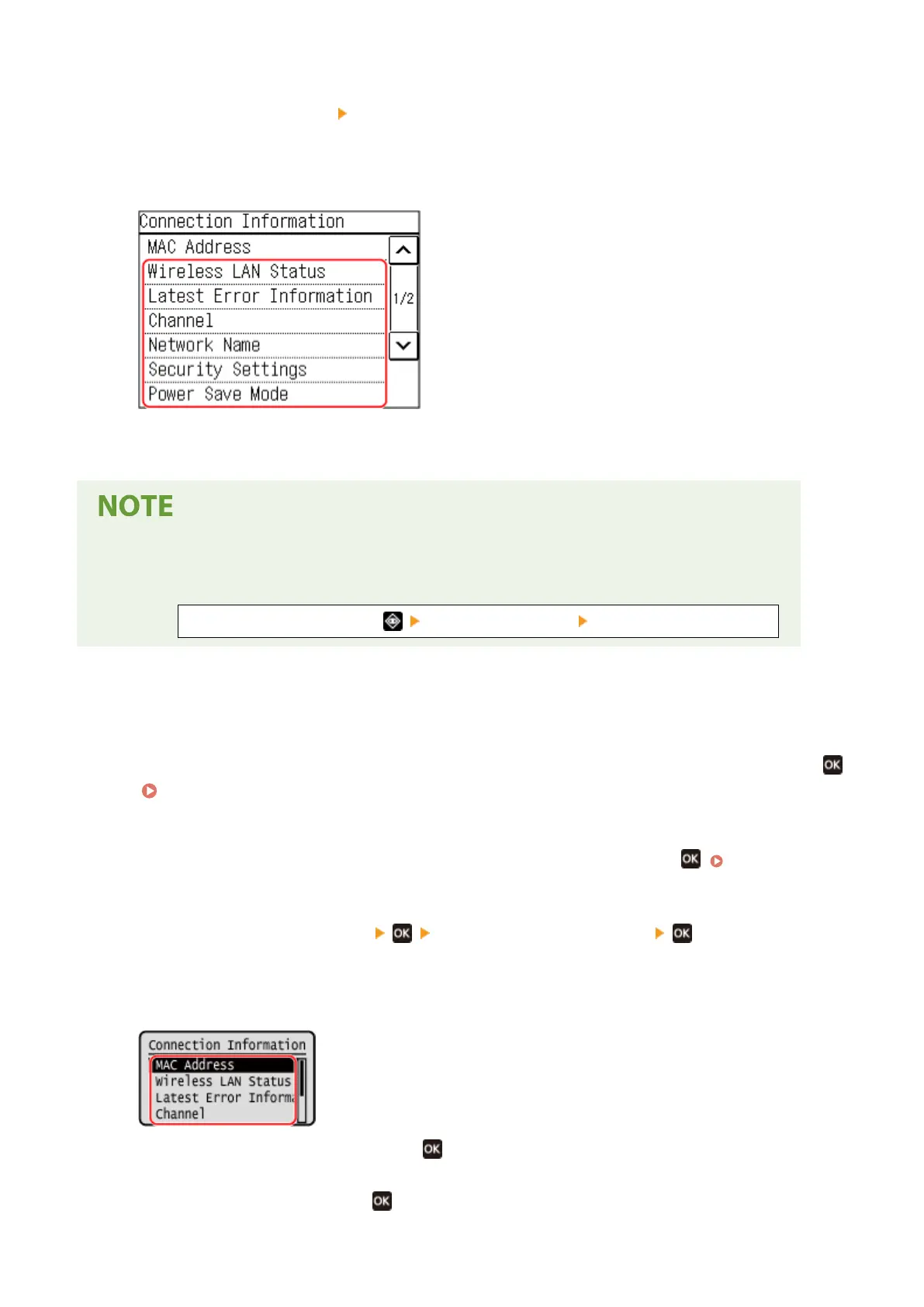 ou can also view the wireless LAN status and error information with the following procedure: