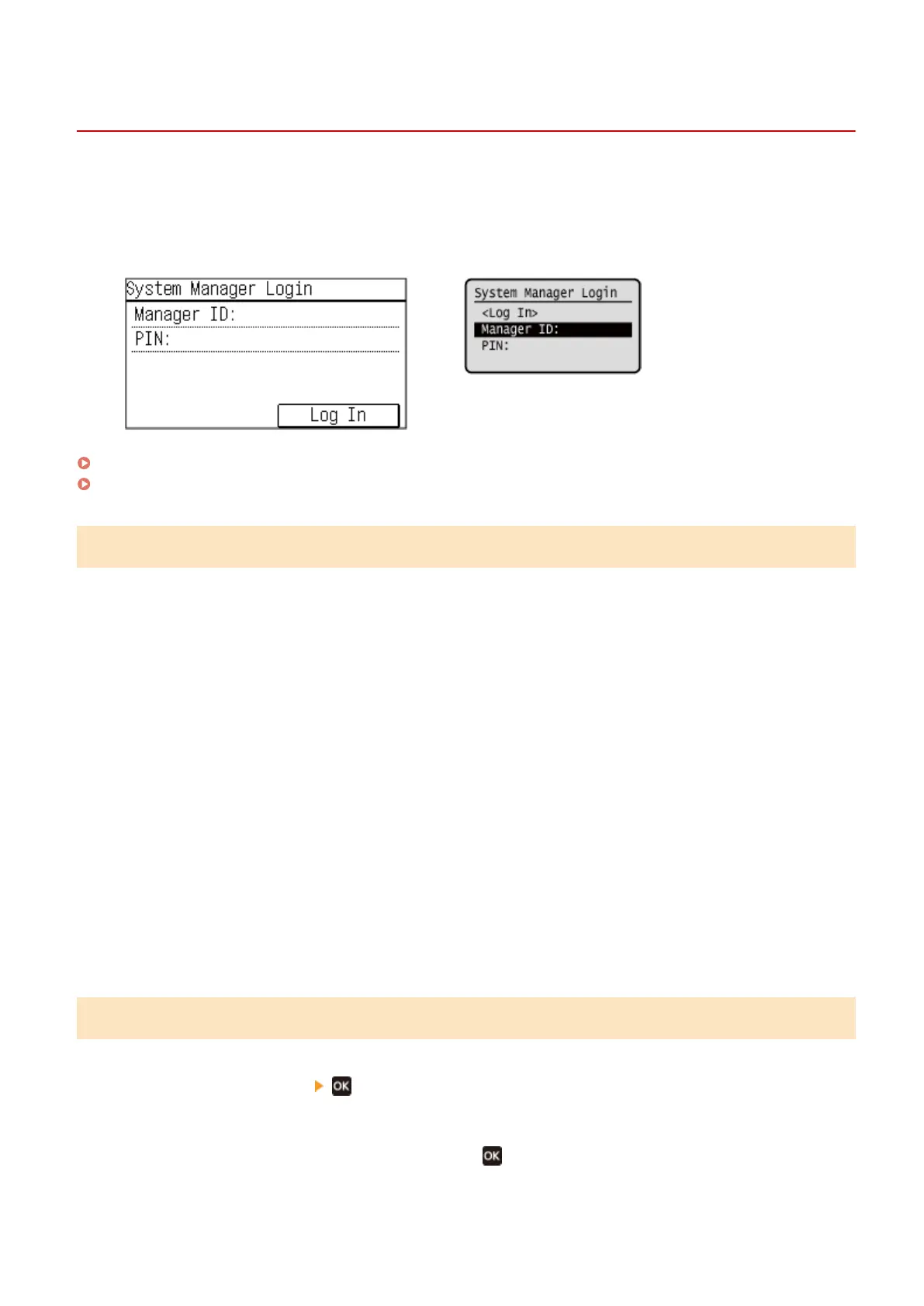 When the login screen is displayed on the operation panel, enter the the System Manager ID and PIN to perform