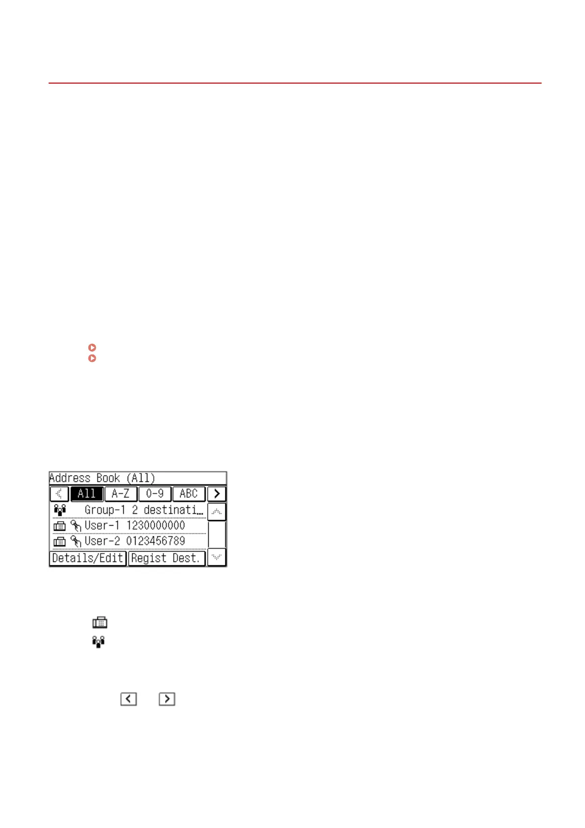 When you call the Address Book from the [Home] screen or fax screen, the following screen is displayed.
