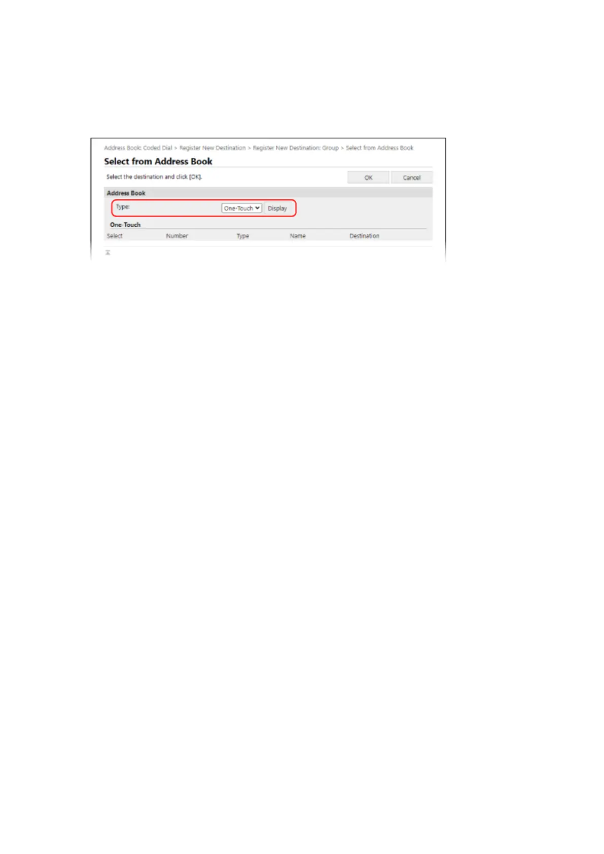 In [Type], select [One-Touch] or [Coded Dial], and click [Display] to change the display of the Address Book.